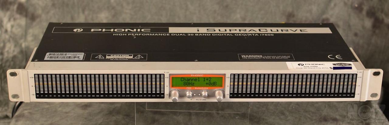 Phonic Ψηφιακό Γραφικό Equalizer & Spectrum Digital Analyzer i7600 SupraCurve Γραφικό Equalizer & Spectrum Analyzer (RTA) διπλού καναλιού (Dual-channel) σε πραγματικό χρόνο (Real-Time) με φωτιζόμενες συχνότητες LED (Spectrum Analyzer). Αριστο, ολοκαίνουριο πλήρως λειτουργικό με έξοδος Balanced XLR, Jack, και διαθέτει έξοδο για Pink Noiz ρόζ γεννήτρια θορύβου με ισορροπημένα σήματα στα 0-dB και διαθέσιμο εγχειρίδιο.