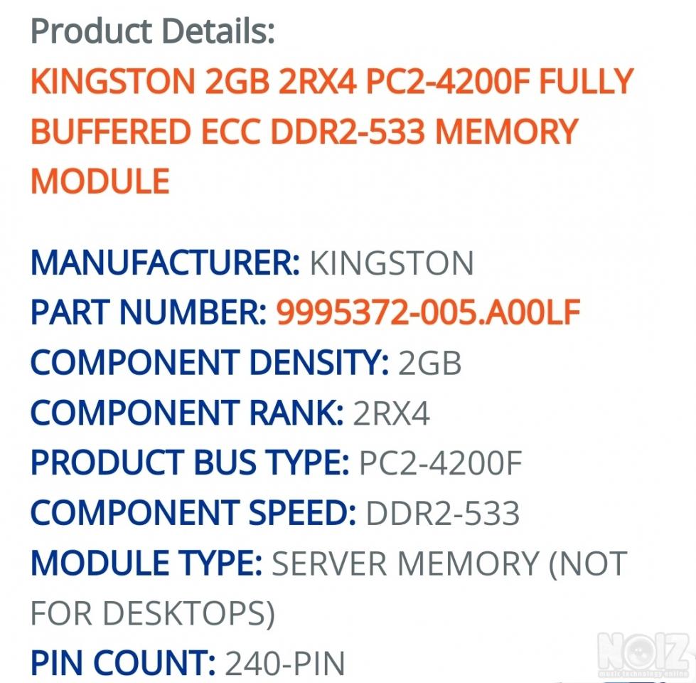 2 μνήμες Kingston 2Rx4 PC2-4200, 2gb έκαστη, ECC Buffered. DDR2- 533mhz. Οι μνήμες ειναι για server και οχι για απλό desktop. 40 ευρώ η μία.