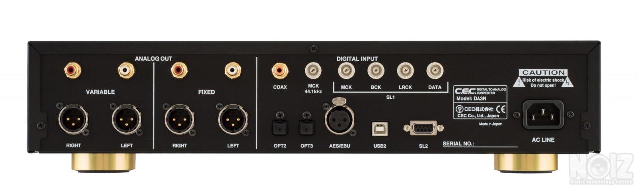 Color Silver or Black..Απο την Ιαπωνια η φημισμενη CEC παρουσιασε το νεο USB DAC : DA-3N . Με πολλες εισοδους digital (TOS , COAXIAL , AES/EBU xlr , BNC , USB2.0 , Master Clock BNC ) αποτελει ενα πληρες κεντρο ελεγχου ψηφιακων πηγων & PC. Με εξοδους RCA & XLR balanced και το τηλεχειριζομενο Volume ,μπορει να οδηγησει απ`ευθειας οποιονδηποτε Τελικο Ενισχυτη αψογα σε full Ισχυ. Το Volume απενεργοποιειται σε fixed και οδηγει ολους τους Προενισχυτες . Με εξοδο ακουστικων υψηλης ποιοτητας. Υψηλη ποιοτητα κατασκευης made in JAPAN. Ο Ηχος ειναι σε κορυφαια επιπεδα , αναλυτικος , φυσικος, με Αναλογικες χροιες & χωρις καμμια σκληραδα. Mεγαλη Στερεοφωνικη εικονα με αριστες Αρμονικες και δυναμικα . H ησυχια και η ροη του Μουσικου προγραμματος εντυπωσιαζουν.