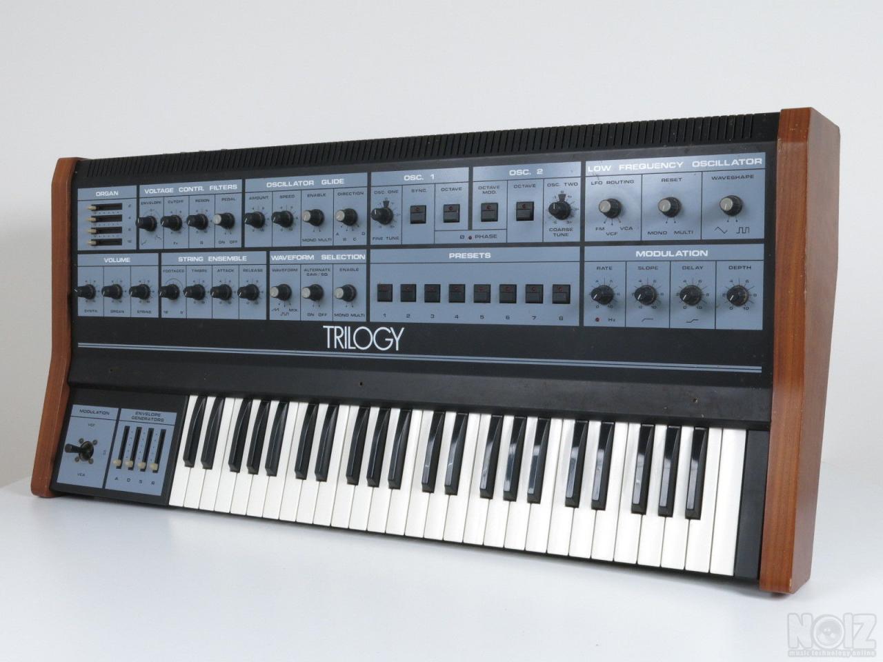 The Trilogy LFO features triangle and square waveforms, and sports controls not often found on other synths. These included a variable delay control that determines how quickly the LFO is brought into the sound, a variable slope for blending two separate tones, and a glide feature for a glissando pitch change in the initial attack of a sound. An oscillator sync option determines the high frequency attack of one oscillator with the other high frequency oscillator. An input on the rear panel allowed for pedal control of this function.