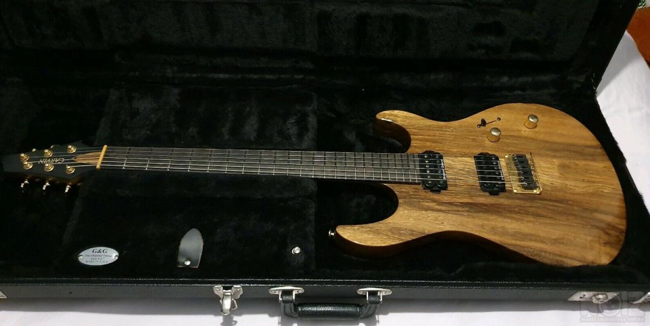 Carvin (Kiesel) DC600 Made in USA with a stunning figured Black Limba body and a figured Black Limba neck-trhough design. Ebony fretboard with 24 stainless steel frets, locking tuners and bone nut. Comes with Seymour Duncan Black Winter pickups, with its (active-ready wiring) and its original Carvin hardshell case.