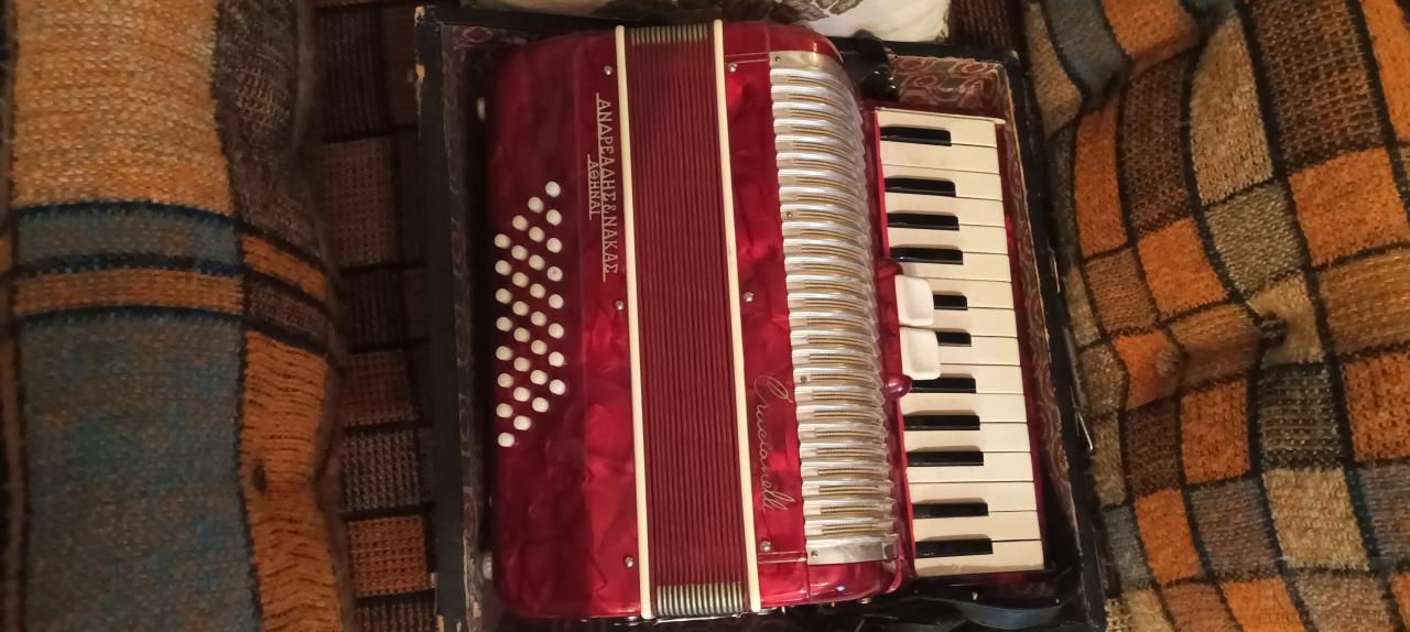 Πωλείται το εικονιζόμενο ακορντεόν. Κατασκευάστηκε κατά τη δεκαετία του 1960. Είναι μεταχειρισμένο αλλά παίζει σαν καινούργιο. Μπορεί να έρθει με την θήκη του (η οποία είναι σε μέτρια κατάσταση). Τρόπος παράδοσης κατόπιν συννενόησης. Έχει 16 πλήκτρα.