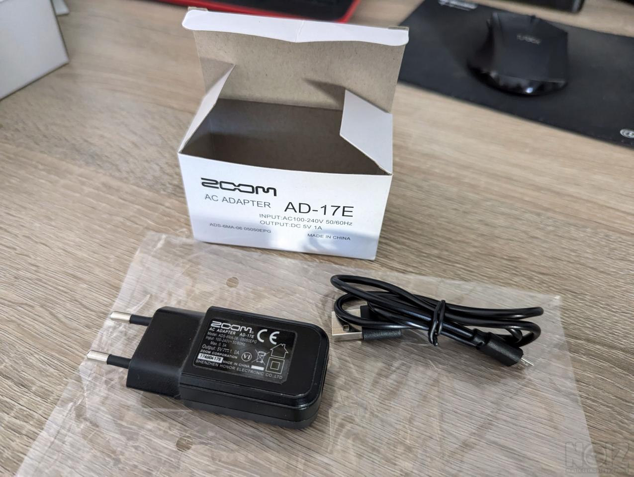 Τροφοδοτικό AD-17E, εναλλασσόμενου ρεύματος USB για τα H1, H1n, H1e, H2, H2n, H5, H6, R8, Q2HD, Q4 και Q8, σε περίπτωση που δεν θέλετε χρήση με μπαταρίες. Μαζί δίνεται και καλώδιο usb A σε micro usb της Zoom, το οποίο δεν υπήρχε στο κουτάκι του τροφοδοτικού αλλά δινόταν με την συσκευή ηχογράφησης. Αχρησιμοποίητο.