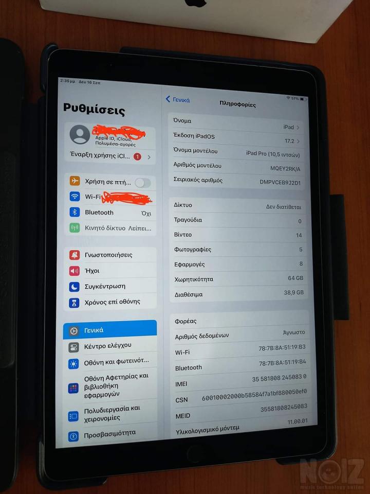 Καλημέρα σας, πουλάω το iPad Pro 10.5 64 GB των φωτογραφιών μαζί με τα αξεσουάρ που φαίνονται στις φωτογραφίες.