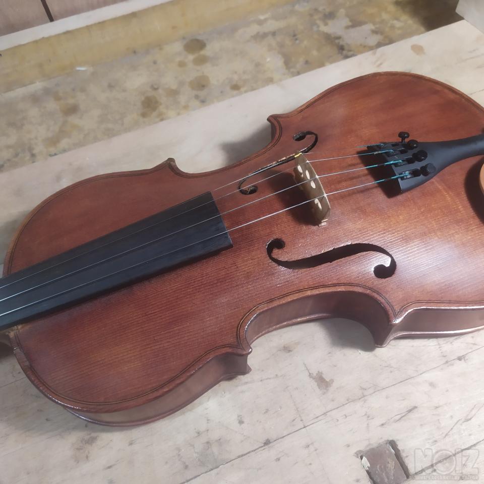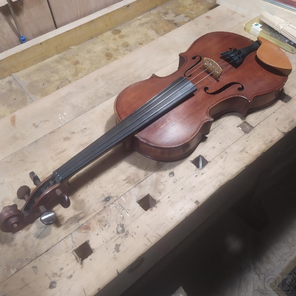 Η ιστορία του είναι ότι αγοράσθηκε πριν 40 χρόνια από μουσικό της Glasgow Symphony Orchestra . Η εκτίμηση είναι ότι πρέπει να είναι κατασκευασμένο στις αρχές του προηγούμενου αιώνα. Η ετικέτα είναι κομμένη οπότε η χρονολογία και ο κατασκευαστής δεν φαίνονται . Αλλά ο ήχος του στο παίξιμο είναι πολύ ωραίος και η κατασκευή του φαίνεται ότι είναι παλιά. Έχει και θήκη . Η πραγματική του θήκη ήταν ξύλινη -σημάδι της παλαιότητάς του - και έχει δορισθεί στο Μουσείο του Κρατικού Ωδείου Θεσσαλονίκης. Επίσης τα κλειδιά του είναι από παλίσανδρο . Και αυτό σημάδι της παλαιότητας του .