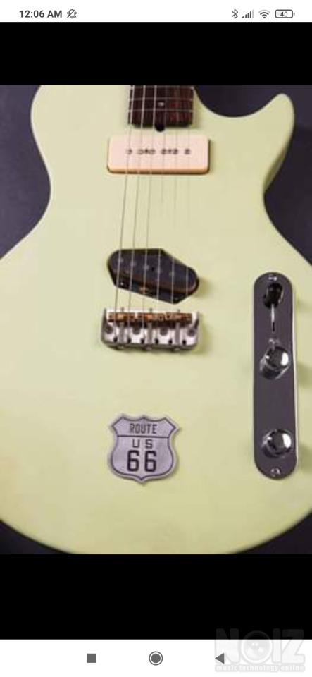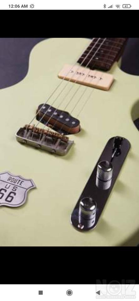 P-90 on the neck position and a custom wound broadcaster style on the bridge position....hardtail bridge with brass saddles.
