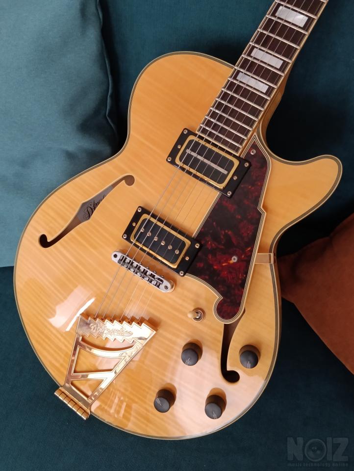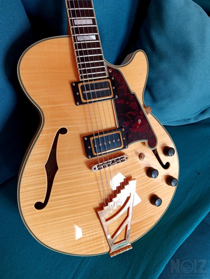 D'Angelico Excel SS σε φυσικό χρώμα και όμορφο tiger maple. Είναι σε κατάσταση βιτρίνας. Αγορασμένη το 2016, αλλά φτιαγμένη τόσο γερή που φαίνεται σα να την αγόρασα χθες. Πολύ καλό όργανο, ευκολόπαιχτη και με το χαρακτηριστικό ζεστό και γεμάτο ήχο μιας semihollow. Δεν τη χρησιμοποιώ τα τελευταία χρόνια και είναι κρίμα που κάθεται. Δίνεται με τη σκληρή της θήκη.