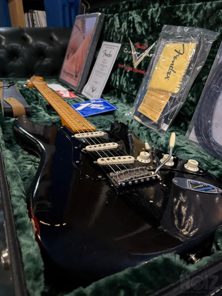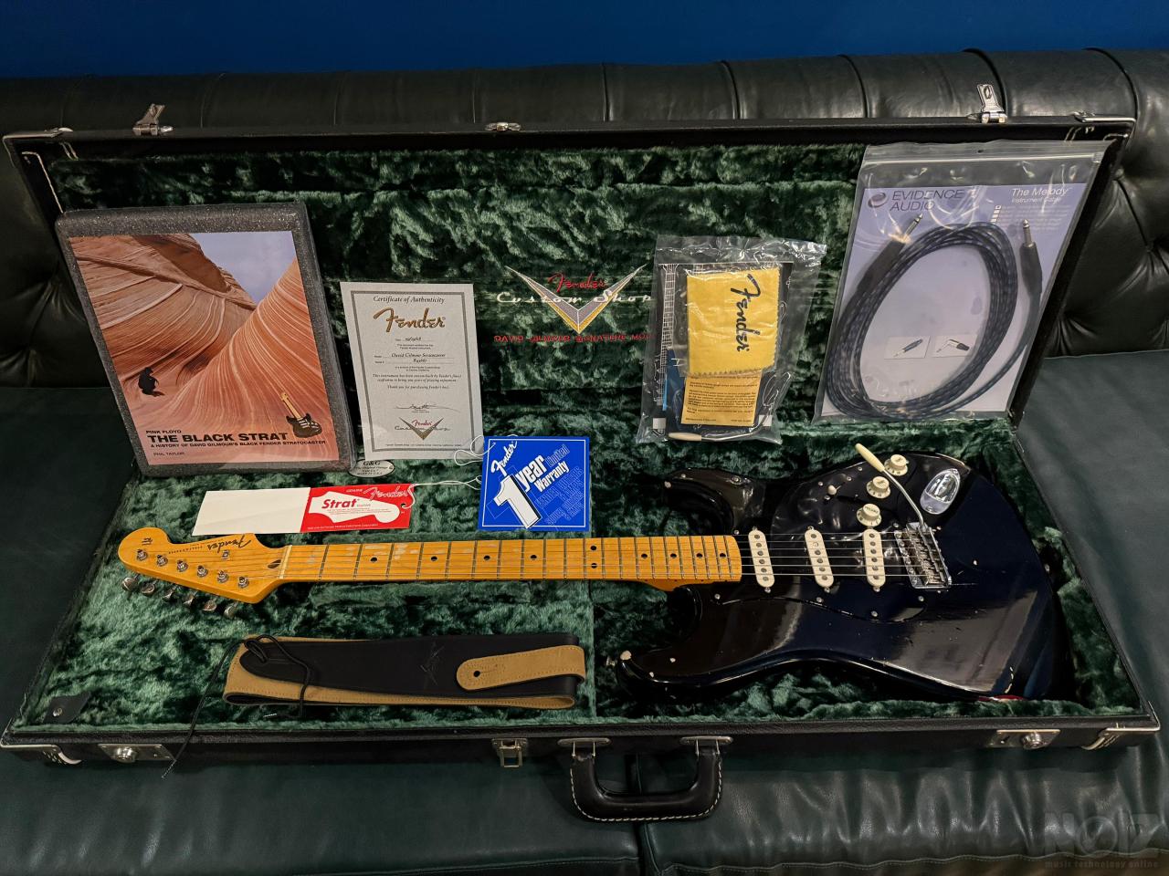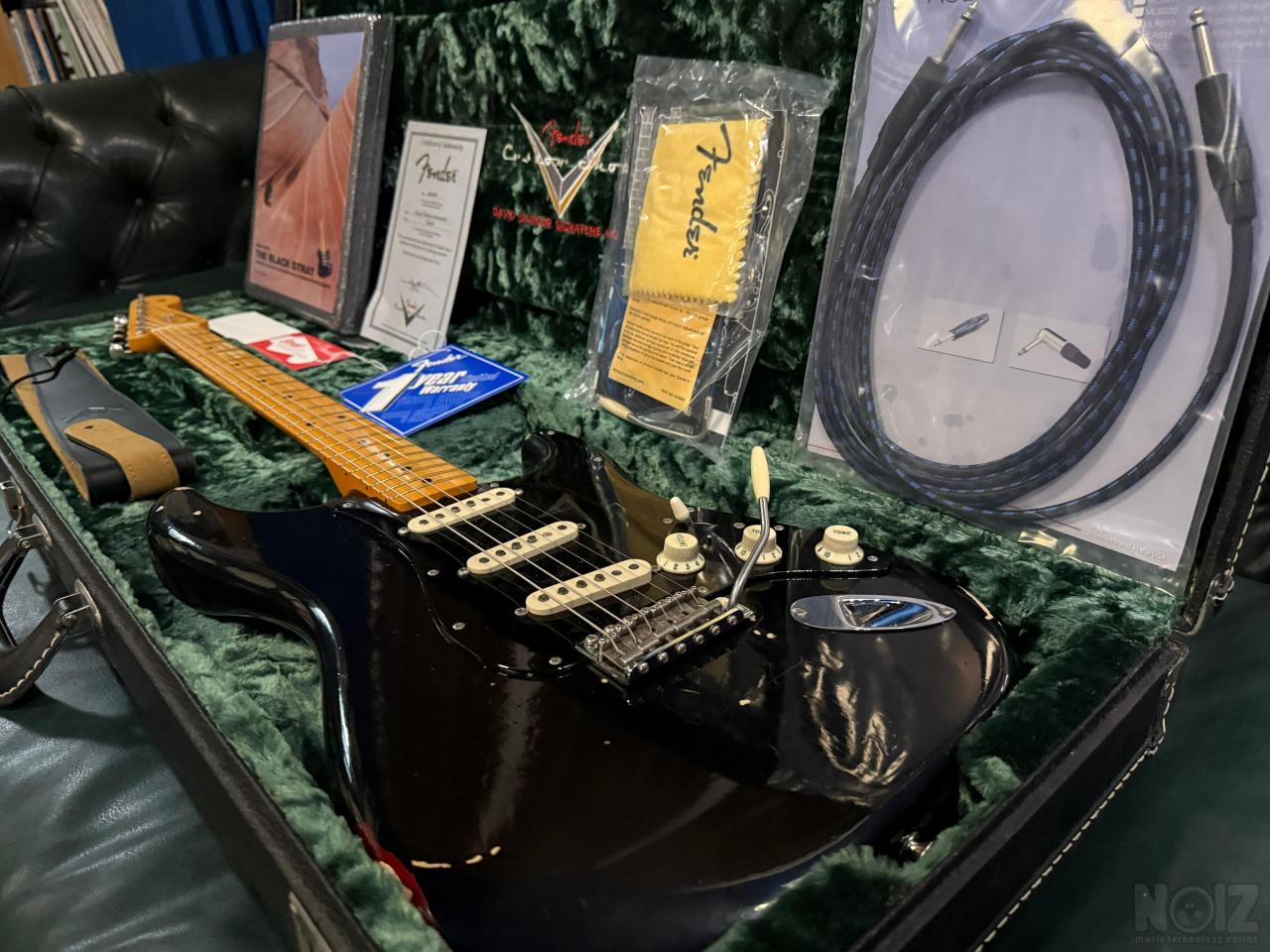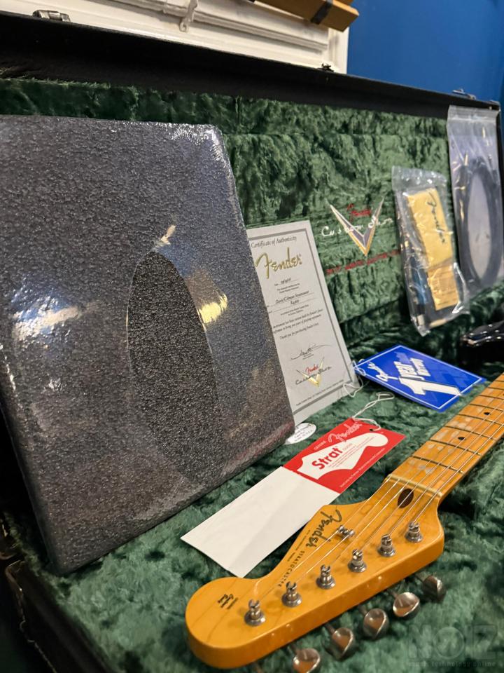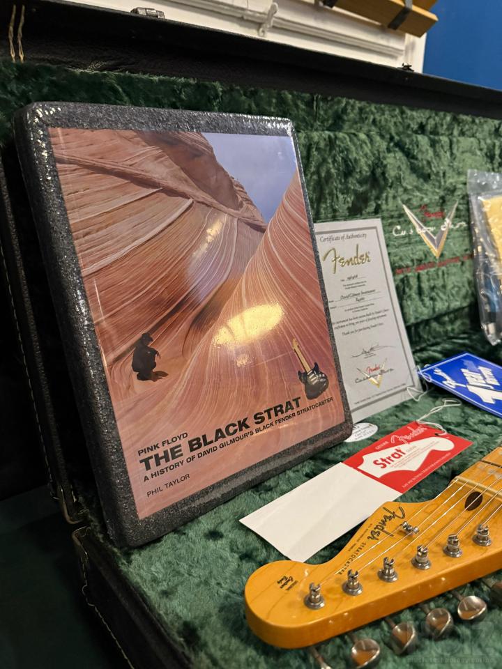 Η κιθάρα δεν έχει βγει σχεδόν ΠΟΤΕ από τη θήκη της. Όλα τα αντικείμενα που τη συνοδεύουν , το αυθεντικό βιβλίο με την ιστορία της Black Strat, το καλώδιο ενισχυτή, το cd ,η αυθεντική πένα του Gilmour, το short tremolo, η δερμάτινη ζώνη,οι χορδές Gilmour , παραμένουν ΣΦΡΑΓΙΣΜΕΝΑ στη ζελατίνα τους κάτι που κάνει την κιθάρα να είναι μοναδική στο είδος της ΠΑΓΚΟΣΜΙΩΣ . Δεν θα βρείτε άλλη αντίστοιχη στο reverb με σφραγισμένες τις συσκευασίες .