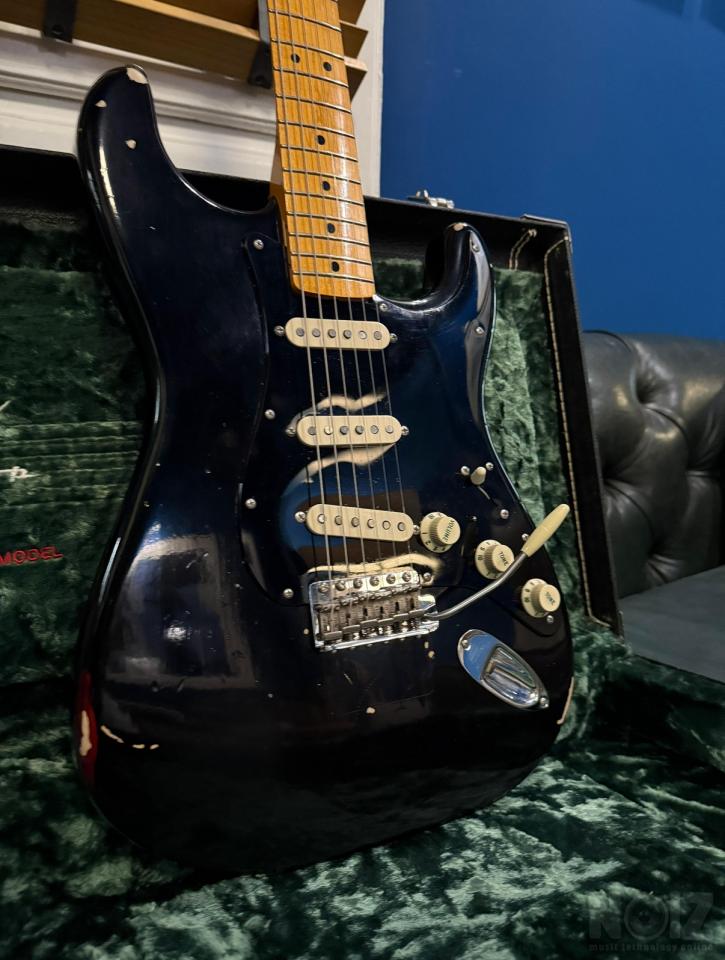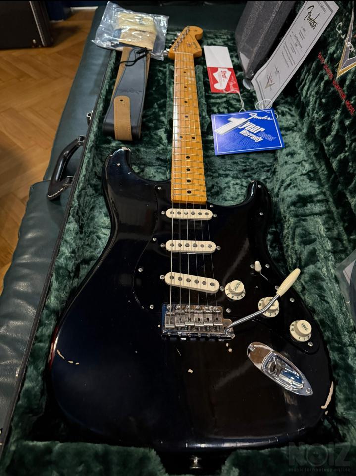 Πωλείται η κάτωθι υπέρ-σπάνια και συλλεκτική Fender Stratocaster David Gilmour Custom Shop Relic του 2008 από την πρώτη σειρά των relic που κατασκευάστηκαν από το custom shop της Fender βασισμένο στην πρωτότυπη κιθάρα Black Strat του David Gilmour.