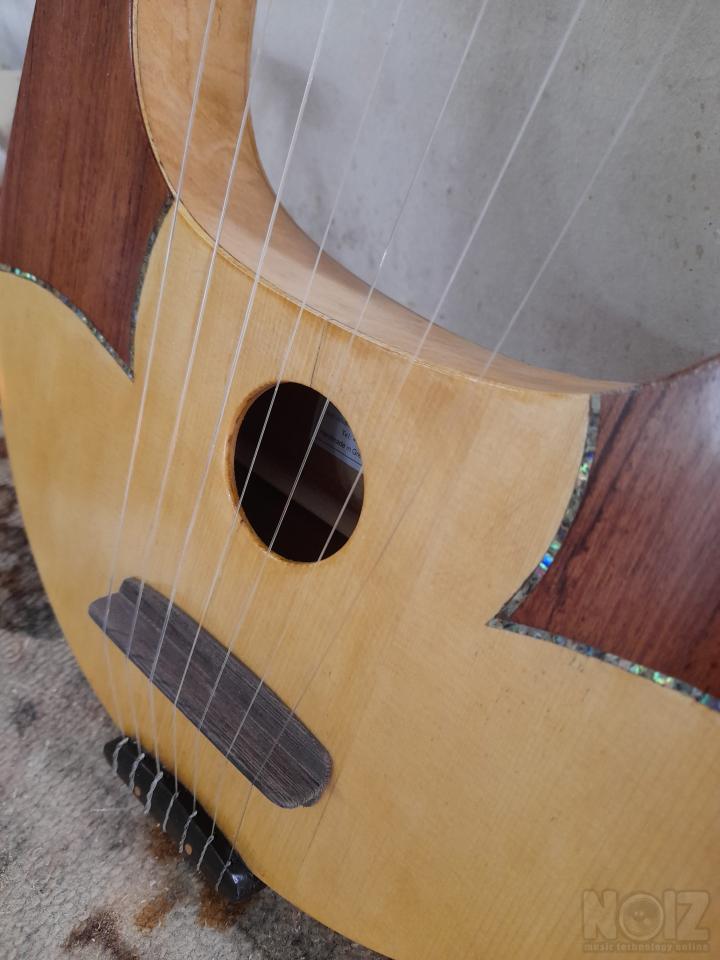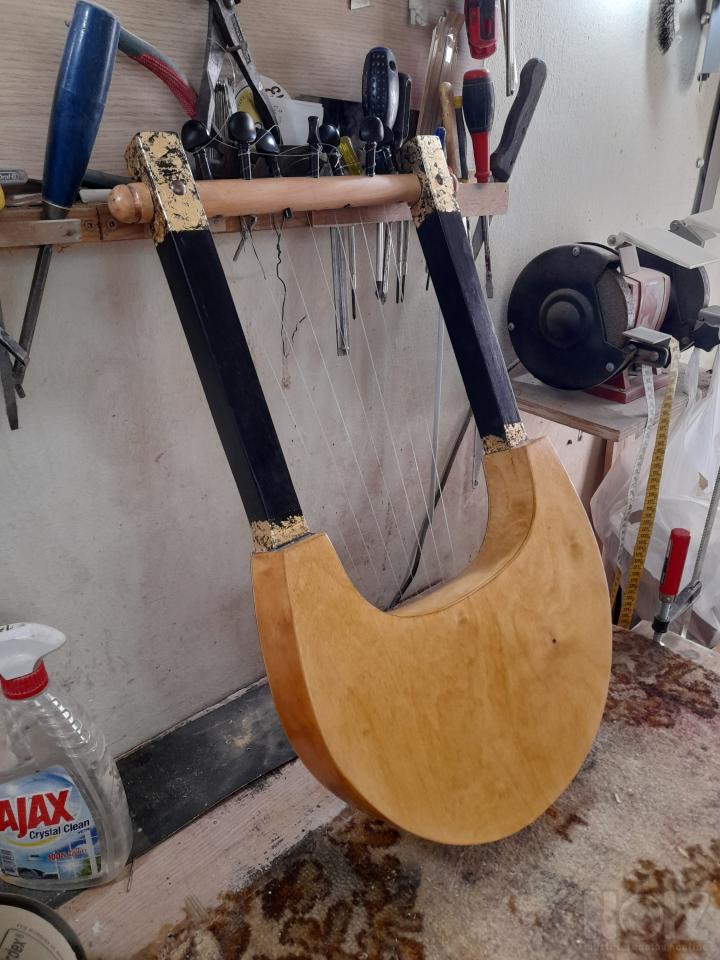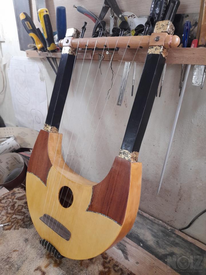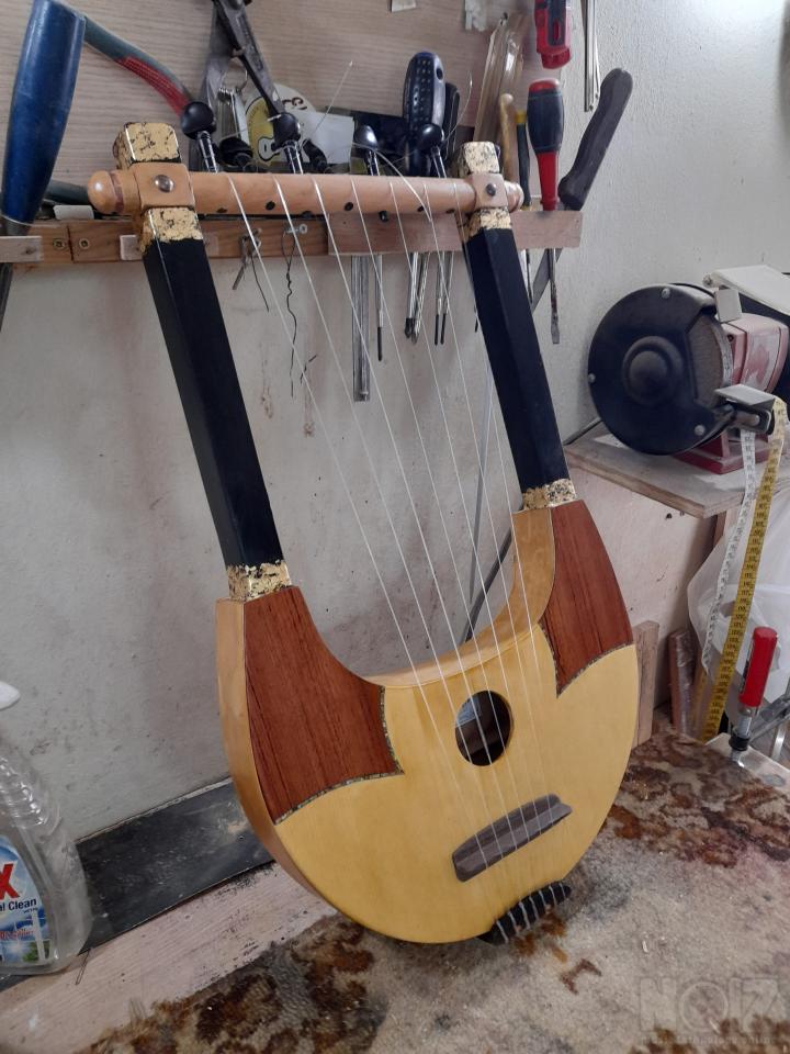 Αρχαία Ελληνική λύρα με επτά χορδές,μοναδικό όργανο εμπνευσμένο από την κλασική αρχαιότητα. Χειροποίητη με ξύλα έλατο και σημύδα, φινίρισμα semi gloss. Διακόσμηση με φυσικό όστρακο άμπαλον και τροπικός καπλαμάς μπουμπίγκα, "κρακελέ" από φύλλο χρυσού. Επτά χορδές με κούρδισμα ματζόρε αλλά και μινόρε και παλλόμενες χορδές μήκους 47 εκ. Πανέμορφο,πολύ ελαφρύ, όργανο που με την πρώτη στιγμή μπορεί ο καθένας που ακόμη και δεν έχει μουσική εμπειρία να παίξει αμέσως τις πρώτες μελωδίες.