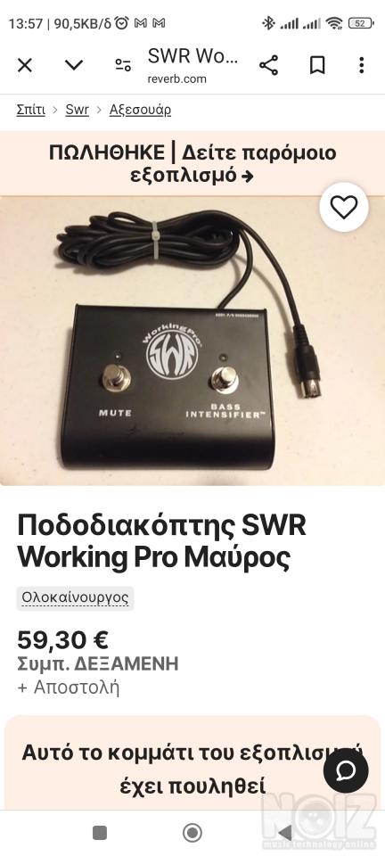 SWR WorkingPro footswitch pedal σε αριστη κατασταση, στελνω παντου αντικαταβολη με εξτρα 7€ ευρω Η δωρεαν αν γινει πριν καταθεση σε τραπεζα τα 40€