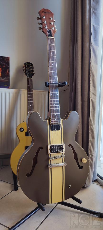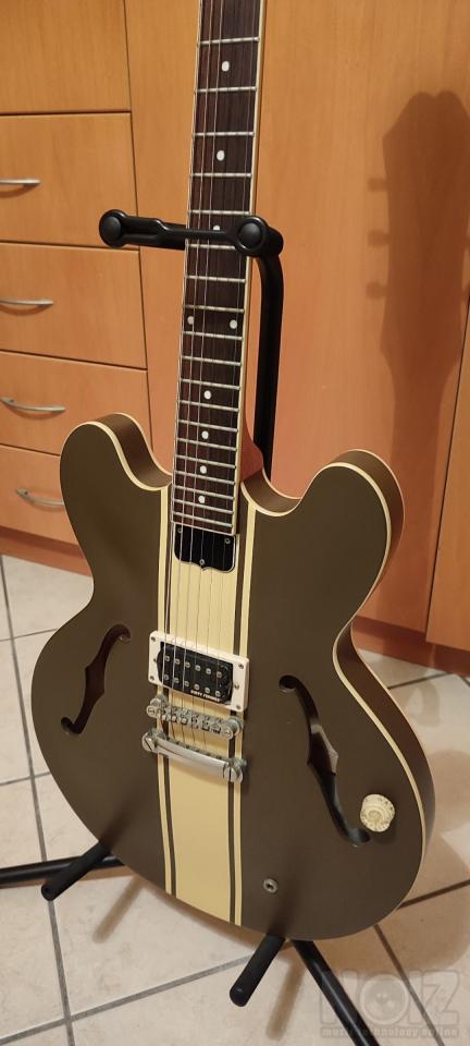 Πρόκειται για discontinued, signature μοντέλο της Epiphone, του κιθαρίστα των blink 182, Tom Delonge. Ειναι semi hollow, ίδια σε σχήμα με την es 335. Σε πολύ καλή κατάσταση, απόλυτα λειτουργική, φοράει τον μαμά μαγνήτη Gibson Dirty Fingers.