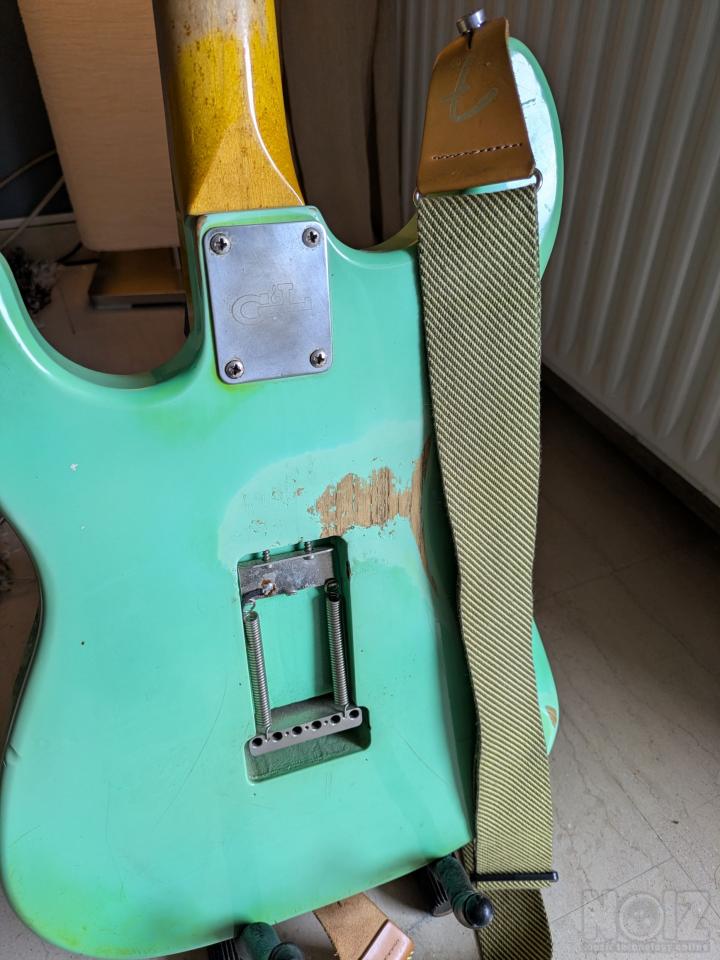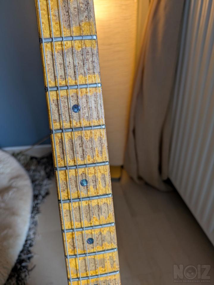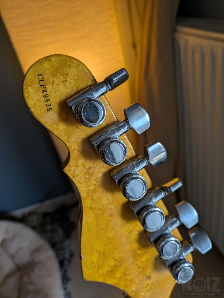 Η ταστιέρα είναι από bird's eye maple. Λείπει ο μοχλός του τρέμολο. Έχει locking tuners.