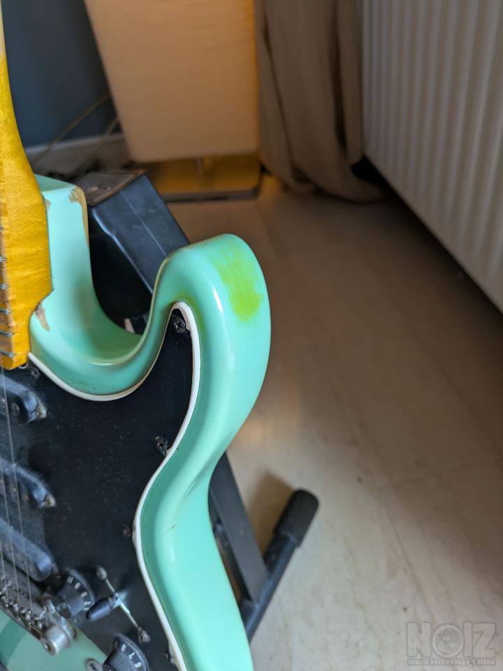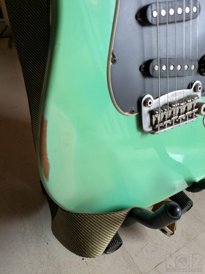 Φοράει άσπρο pickguard αλλά αυτήν την στιγμή έχει μαύρο αυτοκόλλητο που βγαίνει εύκολα - ήθελα να δω πως θα φαίνεται. Δίνεται μαζί με την αυθεντική θήκη της (δείτε φώτο).