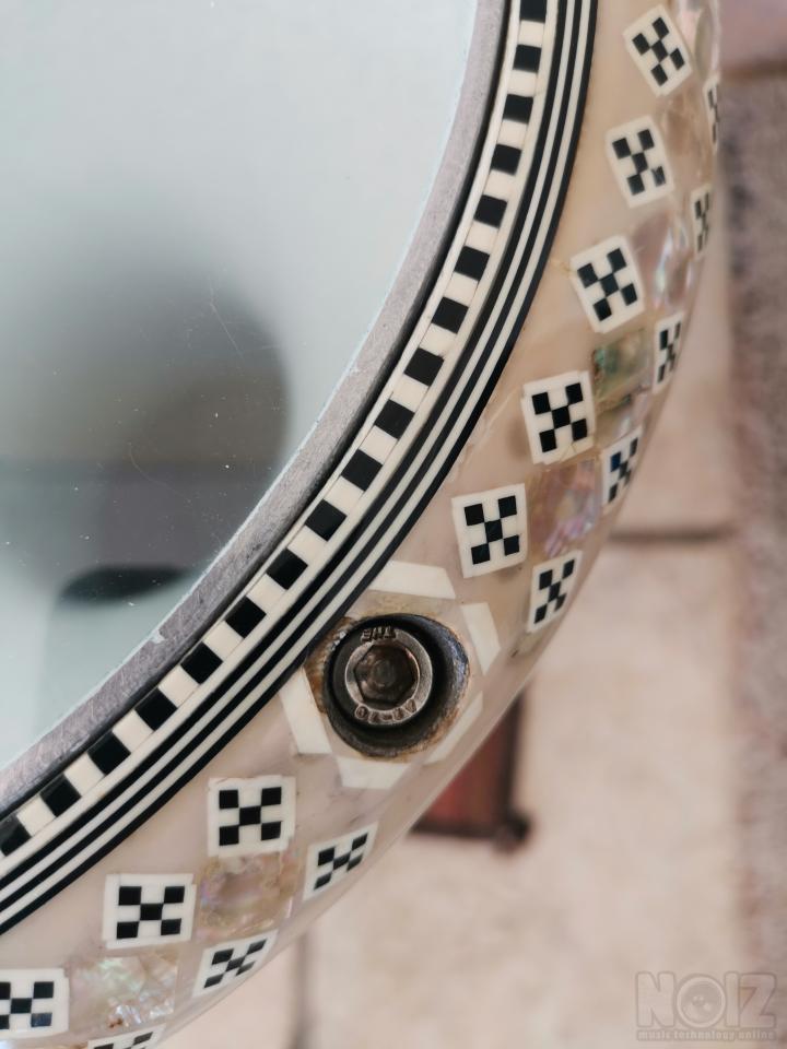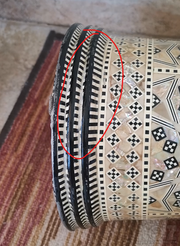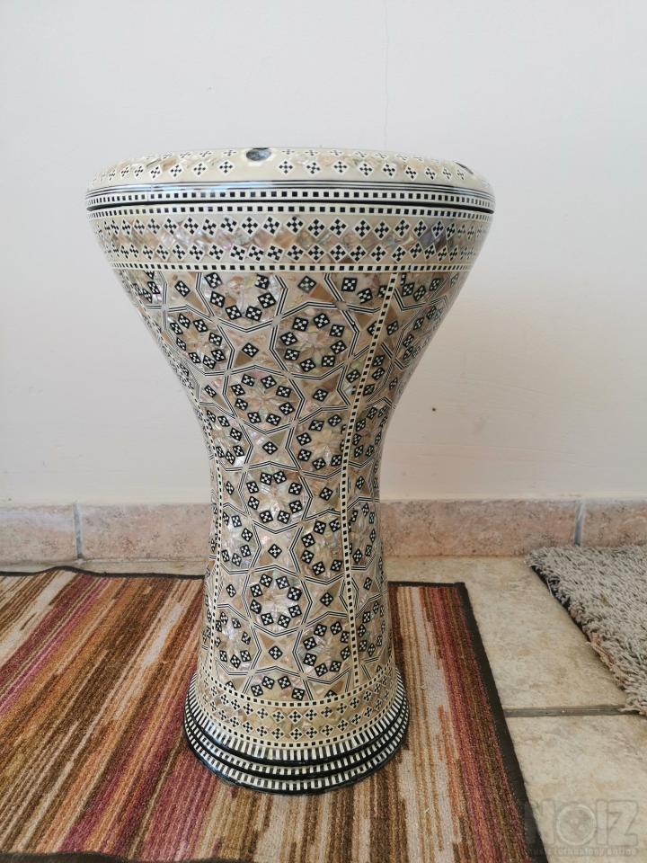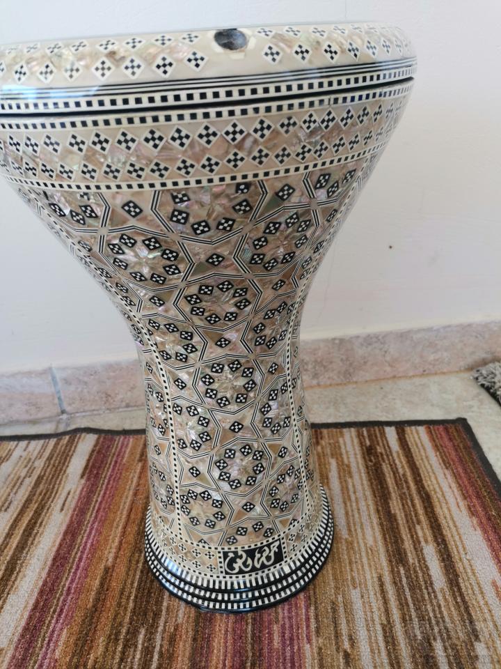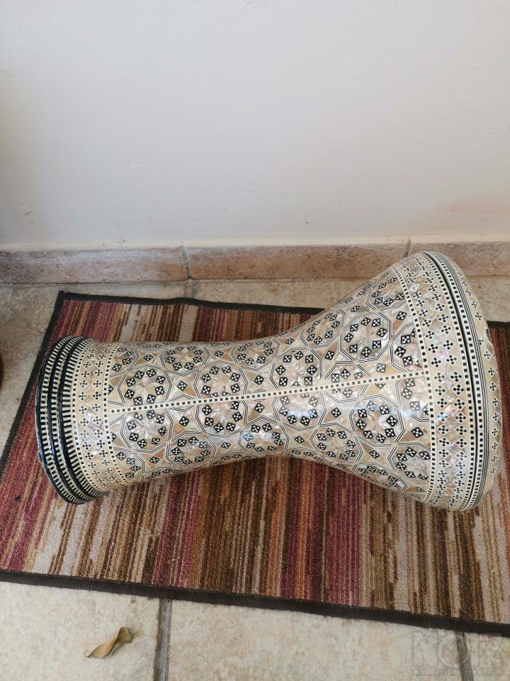 Πωλείται στα 120 €darbuka / τουμπερλέκι gawharet el fan διαμέτρου 22cm ή 8.75" με ανοξείδωτες βίδες, βαμμένο εσωτερικά με πέρλα και με φθορές στη βάση του και χαμηλά περιμετρικά στις μαύρες γραμμές (βλέπε τελευταία φωτογραφία).