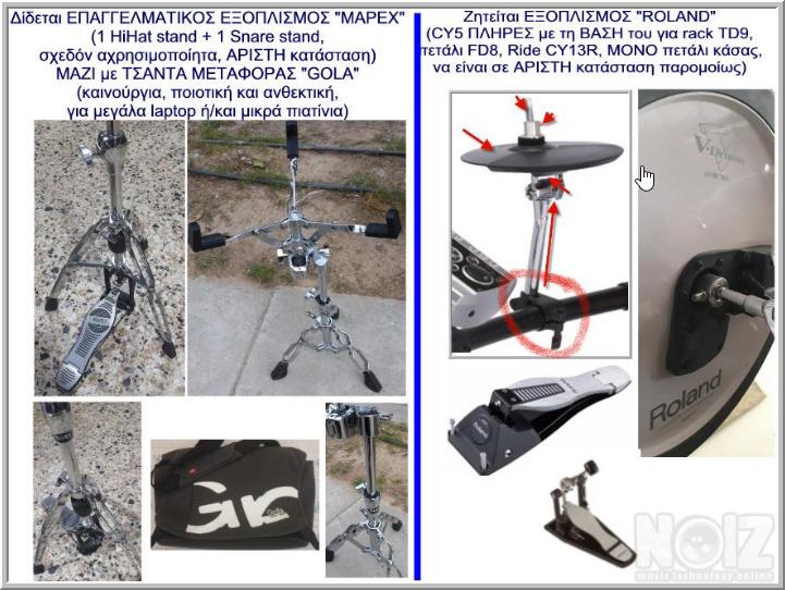 Αν σας ενδιαφέρει ανταλλαγή > Ζητείται ΕΞΟΠΛΙΣΜΟΣ ROLAND (CY5 ΠΛΗΡΕΣ με τη βάση του για rack TD9, πετάλι HiHat FD8, πιατίνι -3ζωνικό- Ride CY13R, μονό πετάλι κάσας, να είναι σε ΑΡΙΣΤΗ κατάσταση παρομοίως).