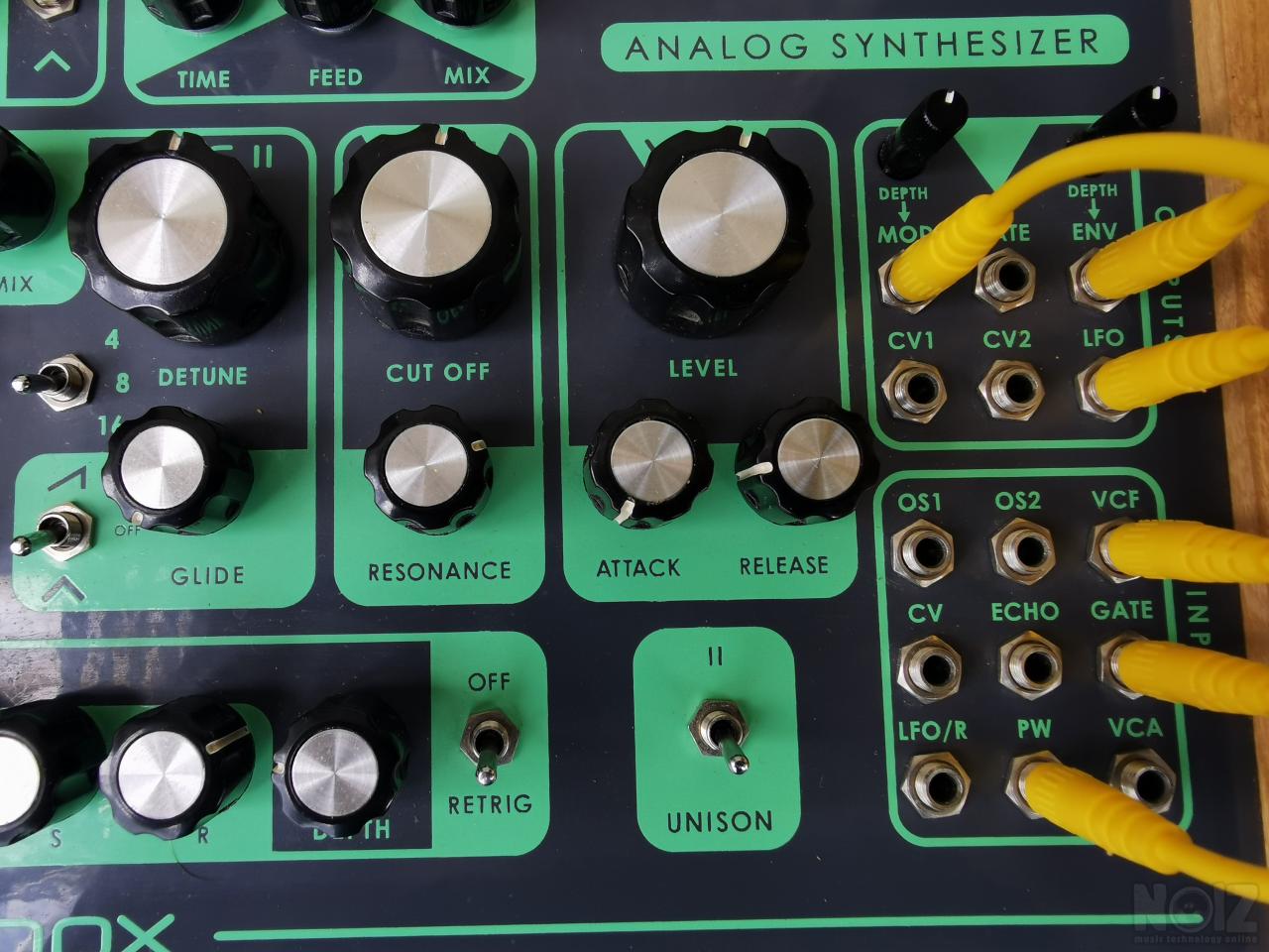 CV outputs: LFO, envelope (attenuated), modulation wheel (attenuated), gate, osc1 pitch (1V/ocv), Osc2 pitch (1V/ocv),