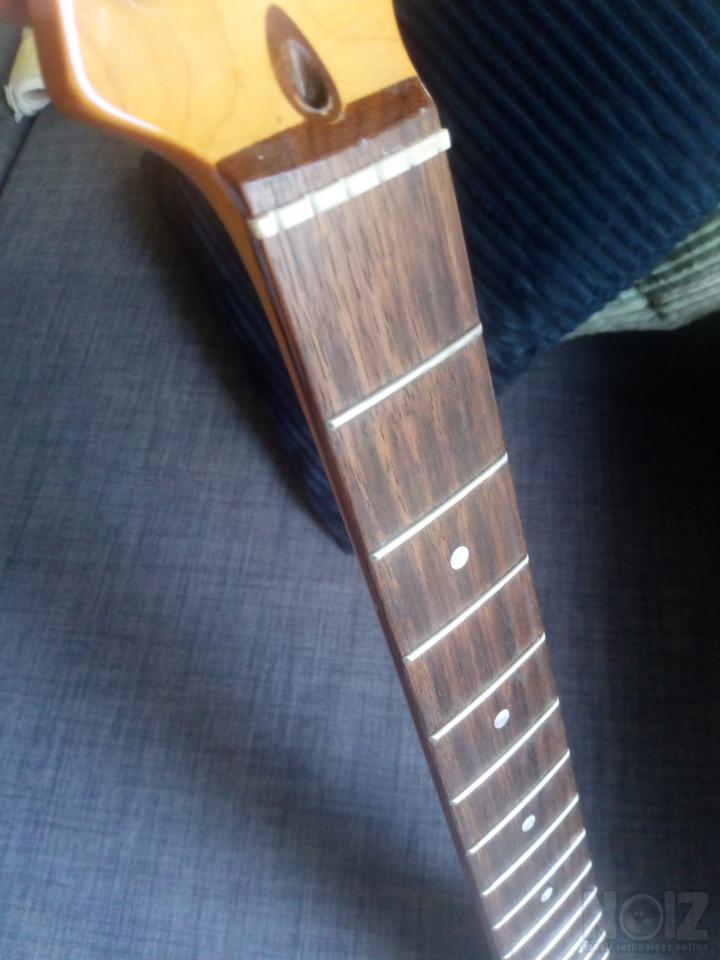 Squire classic vibe σε καλή κατάσταση με χαμηλό action και σεταρισμενο nut. Αν θυμάμαι καλά πρέπει να είχα τρίψει ελαφρυά κάνα δυο τάστα που χρειαζονταν. Λειτουργική βέργα , παίζει άψογα.