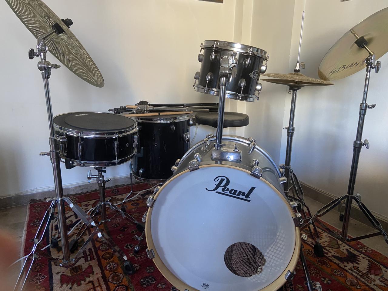 Αχρησιμοποίητο drum set της Pearl, με πιατίνια της