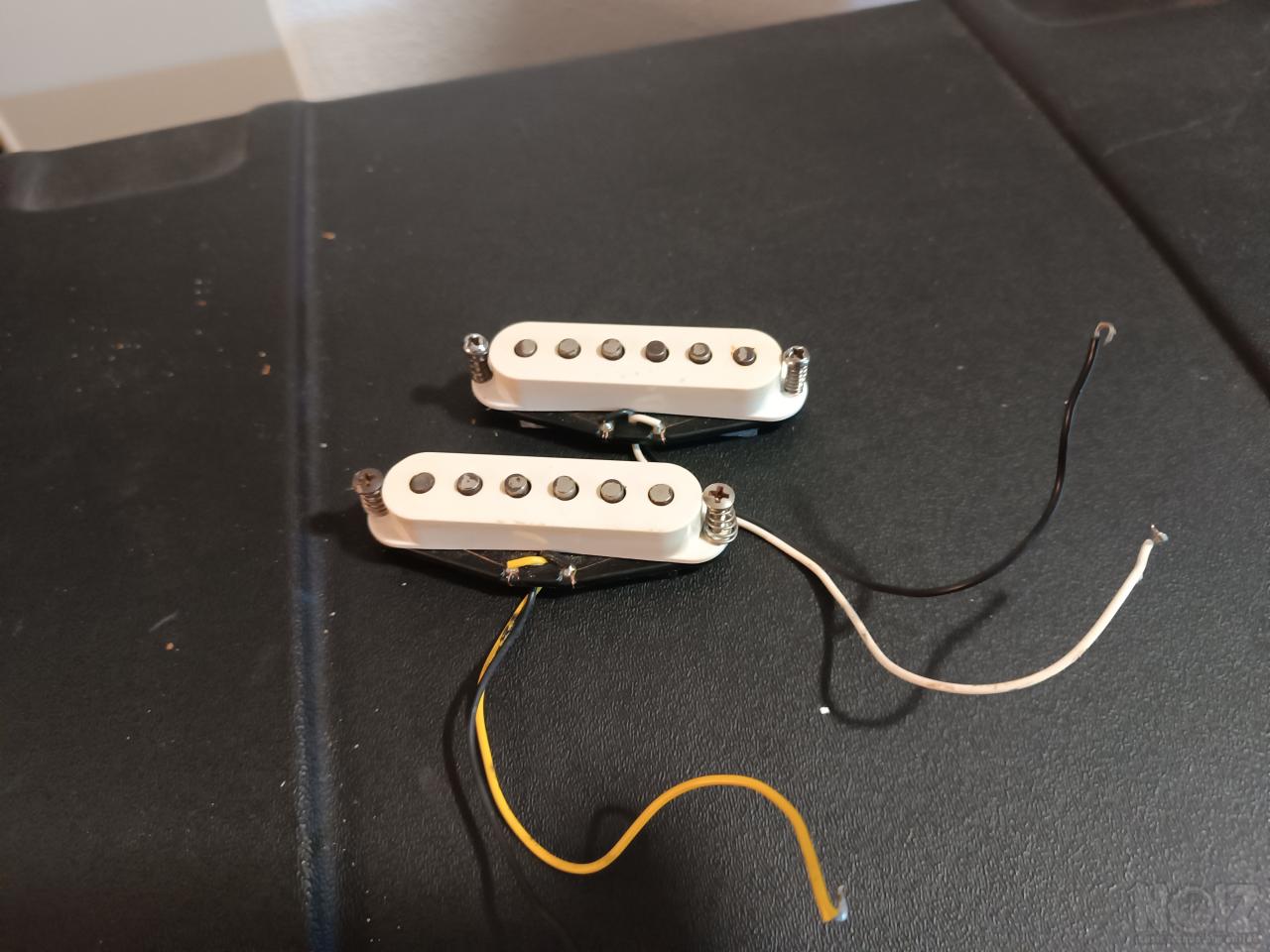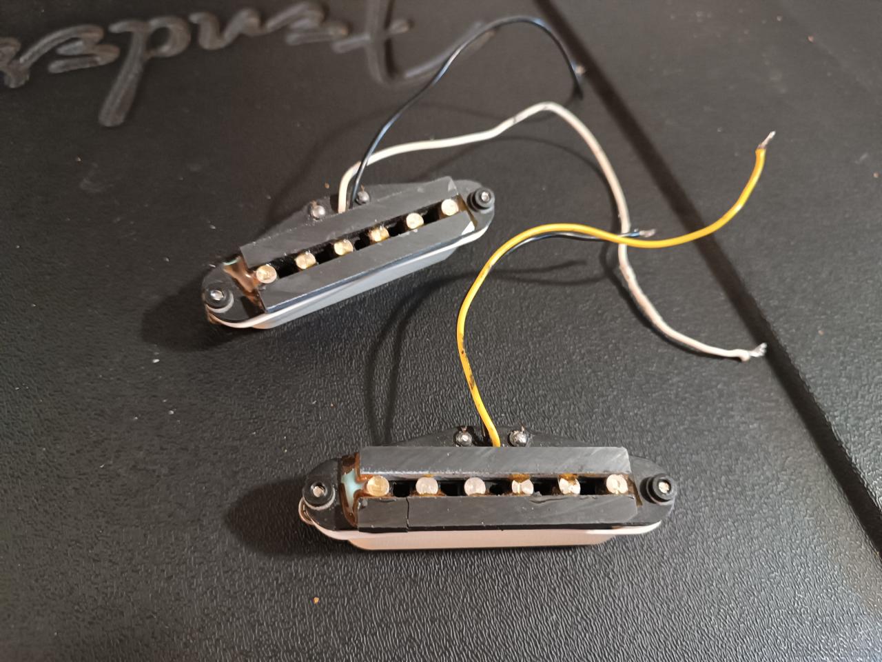 Δύο κεραμικοί μονοπήνιοι μαγνήτες από 90's Fender Richie Sambora MIM HSS Stratocaster. Neck με το άσπρο μαύρο καλώδιο και Middle rwrp με το κίτρινο μαύρο καλώδιο. Απόλυτα λειτουργικοί παρά τα χρόνια τους. Αποστολή μόνο μετά από κατάθεση ή iris με box now δωρεάν.