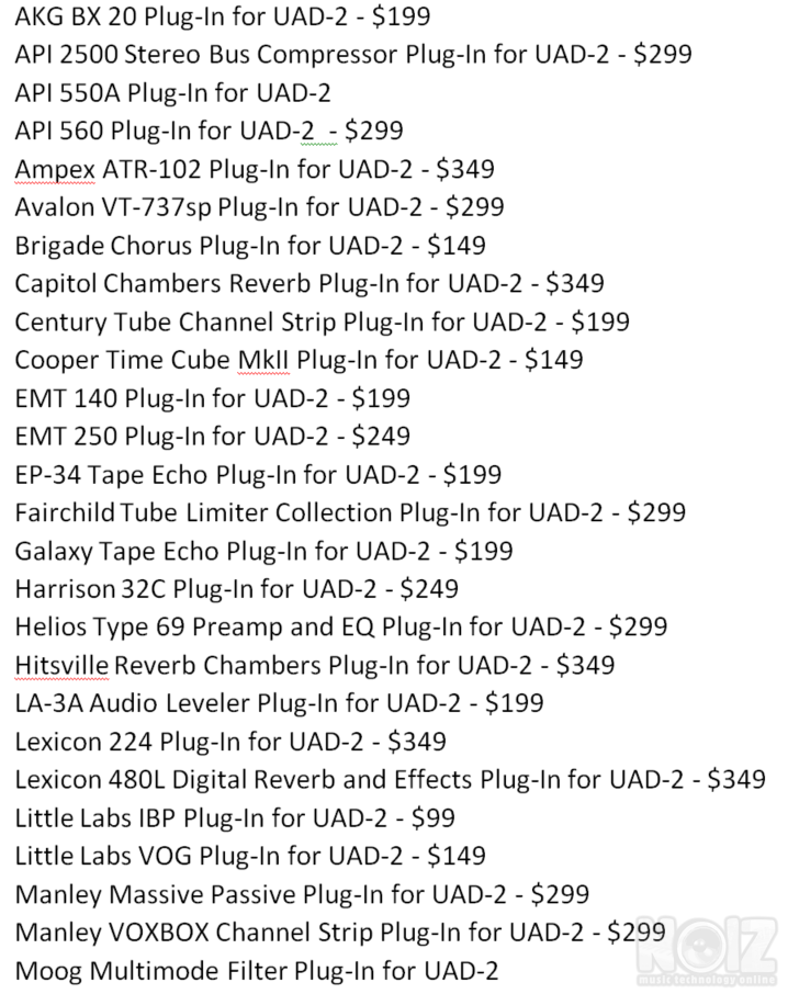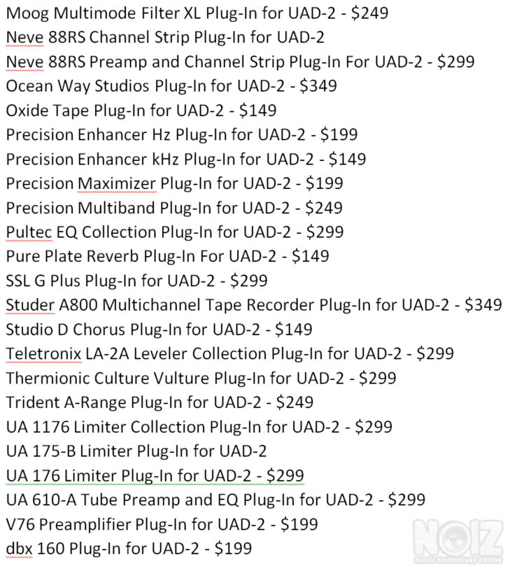 Τα plugin που δίνονται μαζί με την κάρτα είναι κορυφαία και διαλεγμένα ένα προς ένα. Δεν μιλάμε για τα Legacy που δίνει η UAD μαζί με τα hardware της. Μιλάμε για Plugin ονομαστικής αξίας 11.305 δολλαρίων. Ακόμα και με τις καλύτερες προσφορές, κουπόνια, εκπτώσεις και τα συναφή, είναι αδύνατο να τα αγοράσει κανείς με λιγότερα από 3500 ευρώ. Δείτε σχετική φωτο με τα plugin γιατι δεν με χωράει να τα γράψω εδω με την μορφή κειμένου. Στην ουσία το όλο πακέτο από μόνο του παρέχει τη βασική λειτουργικότητα για ένα στούντιο που θέλει να λειτουργήσει σε υψηλά επαγγελματικά στάνταρ.