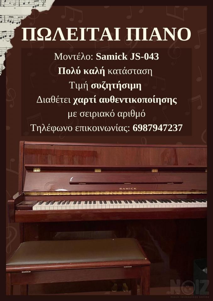 Πωλείται πιάνο Samick JS-043 με χαρτί γνησιότητας με σειριακό αριθμό.