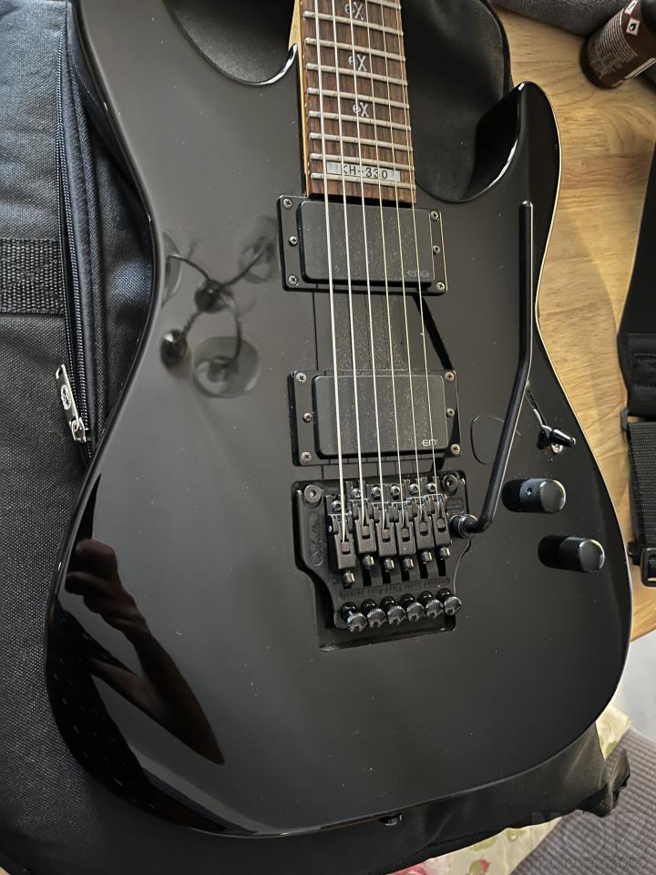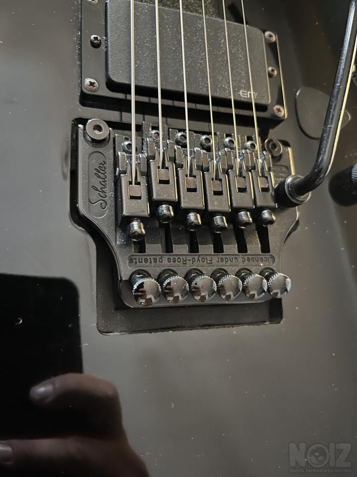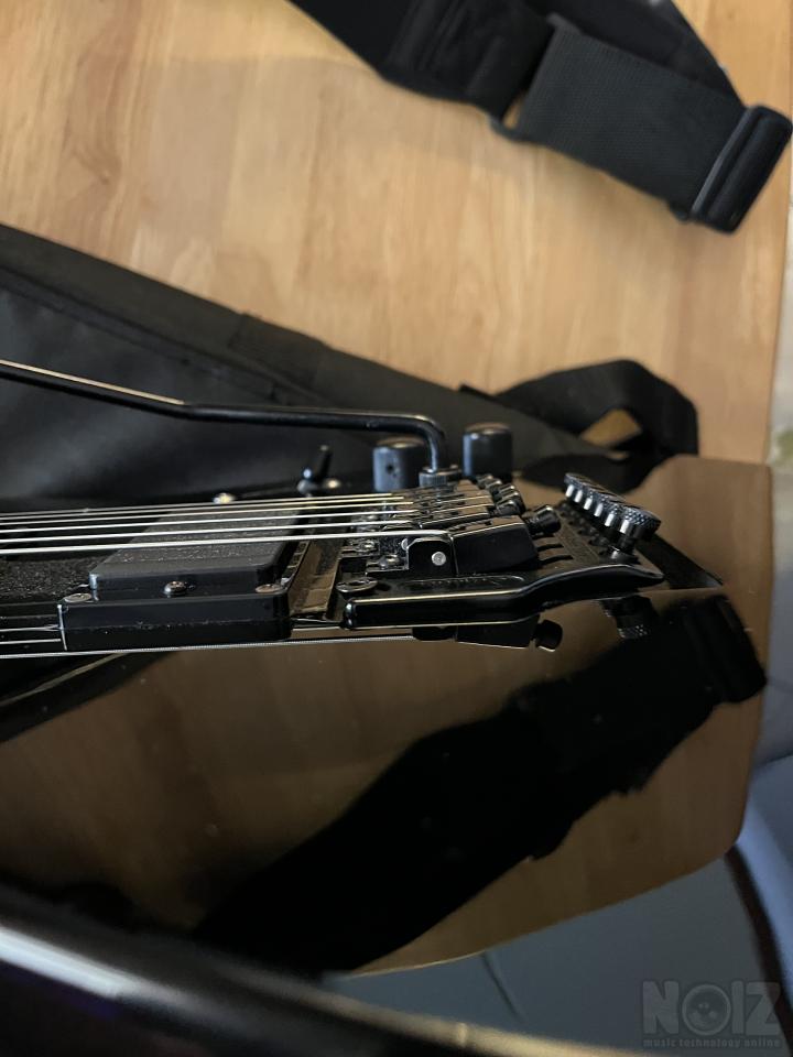 Η κιθάρα έχει αναβαθμιστεί και έχει τις καλύτερες προδιαγραφές για floyd rose. Η ταστιέρα είναι φοβερή rosewood και η αίσθηση στο λαιμό από πίσω καταπληκτική καθώς είναι το ξύλο με βερνίκι και δεν κολλάει στο χέρι. Η κιθάρα είναι bolt on αλλά λόγου του σχεδιασμού έχει πολύ εύκολη πρόσβαση στα ψηλά τάστα. Διατηρεί το κούρδισμα άριστα και παίζει φυσικά τέλεια. Στο τρίτο ποντεσιόμετρο έχει μπει από επάνω μια πένα, αλλά μπορεί να βγει εύκολα και να μπει κανονικά το knob. Δεκτή δοκιμή και αποστολή εκτός Θεσσαλονίκης.