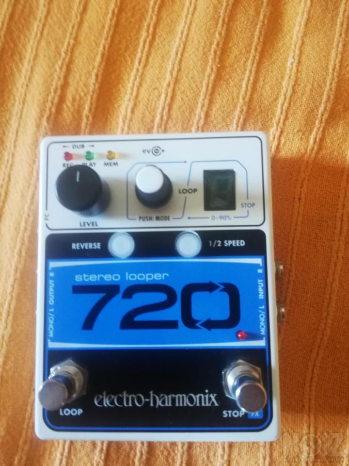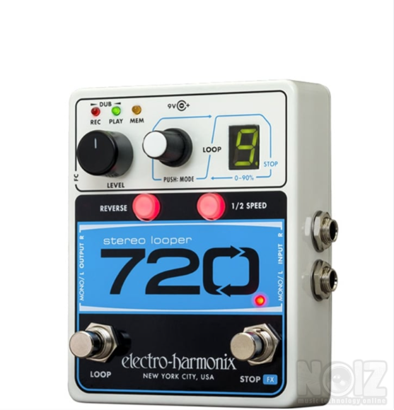 Το EHX 720 Stereo Looper είναι ένα ισχυρό πετάλι looping με 12 λεπτά στερεοφωνικής εγγραφής, 10 τράπεζες μνήμης και λειτουργίες δημιουργικής απόδοσης. Ο απλός στη χρήση σχεδιασμός του το καθιστά εύκολο και αποτελεσματικό στη χρήση τόσο σε καταστάσεις live όσο και σε εξάσκηση. Οι εγγραφές 720 σε στερεοφωνικό υψηλής ποιότητας για χρήση με στερεοφωνικά εφέ ή ακόμη και χρήση με δύο όργανα. Ένας δεύτερος ποδοδιακόπτης μπορεί να προγραμματιστεί ώστε να διακόπτει την αναπαραγωγή ή να ενεργοποιεί/απενεργοποιεί τα ενσωματωμένα εφέ αναπαραγωγής Reverse και 1/2 Speed. Η προγραμματιζόμενη λειτουργία Fadeout εφαρμόζει ένα αυτόματο fade όταν διακόπτεται η αναπαραγωγή.