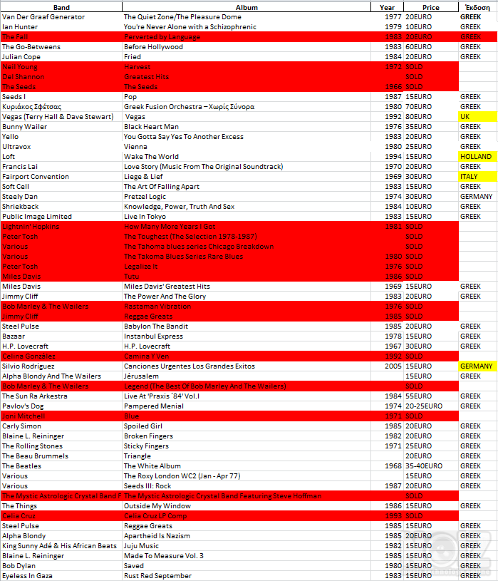 Λίστα με 50+ βινύλια για πώληση – Διάφορα είδη – Άριστη κατάσταση σχεδόν άπαιχτοι