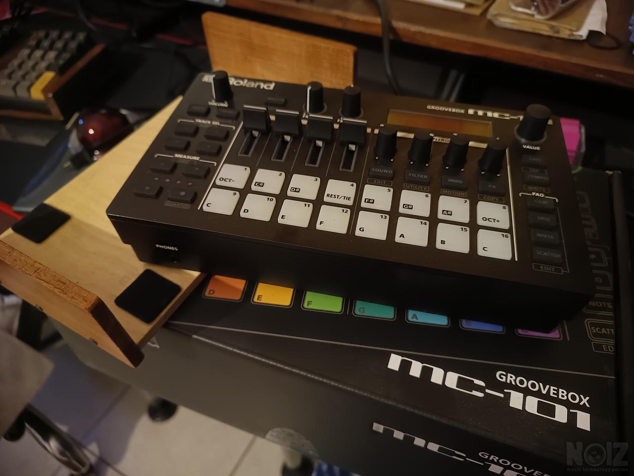 Roland MC-101 και custom ξύλινο stand.