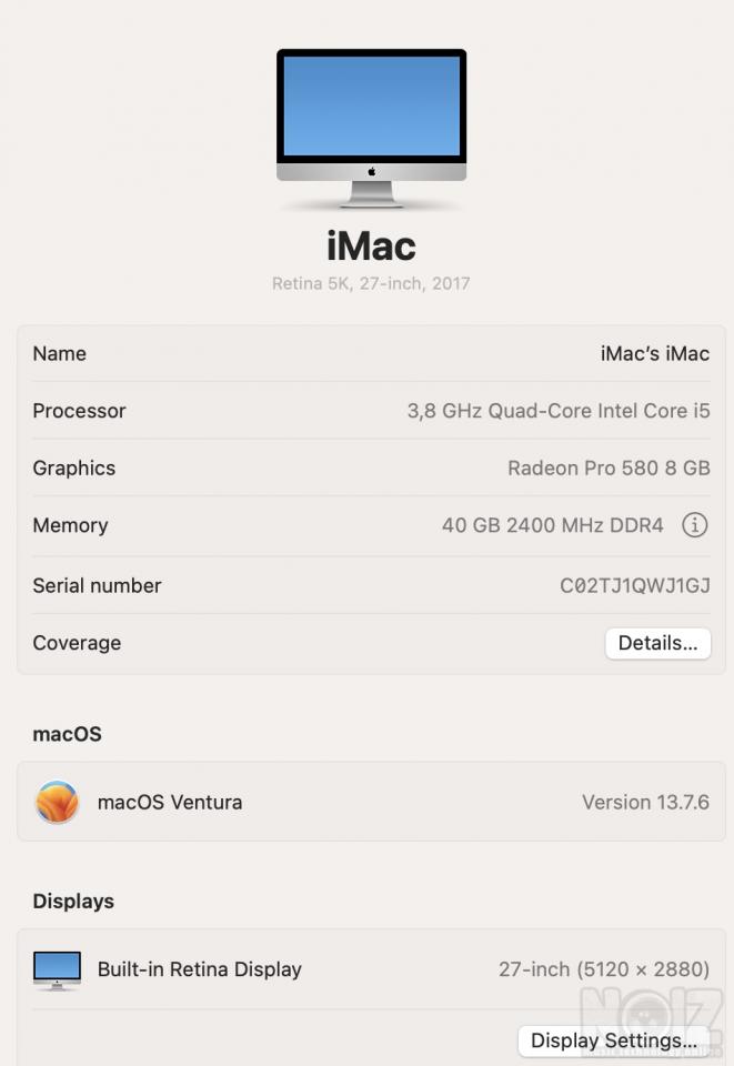 iMac 27" 5K Retina (Late 2017) – Intel i5 3.8GHz /40GB RAM / Radeon Pro 580 8GB / 2TB HDD