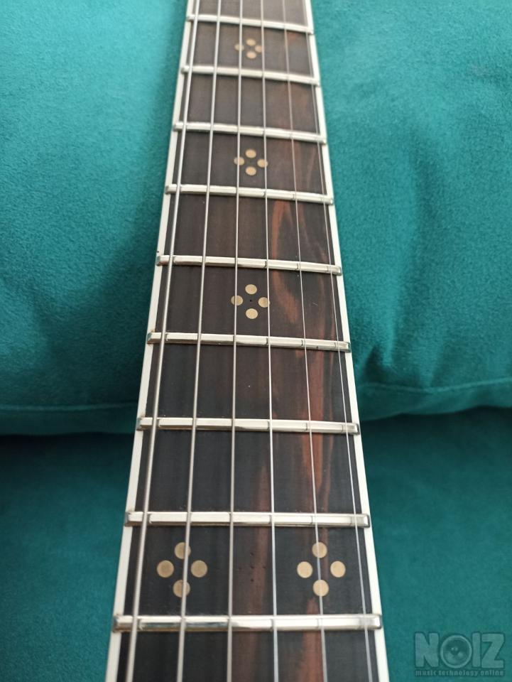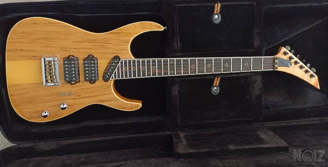 Χειροποίητη, custom, του Λεωνίδα Βραχάτη, ενός από τους καλύτερους luthiers. Πολύ ποιοτική κατασκευή με εκλεκτά ξύλα (bird's eye, εβενος), ελαφριά με λεπτό, βολικο, γρηγορο μπρατσο neck thru body. Πάρα πολύ καλός ήχος. Η παραγγελία σήμερα θα ξεπερνούσε τις 3200 €. Συνοδεύεται από σκληρή θήκη . μαγνητες Dimarzio S H H
