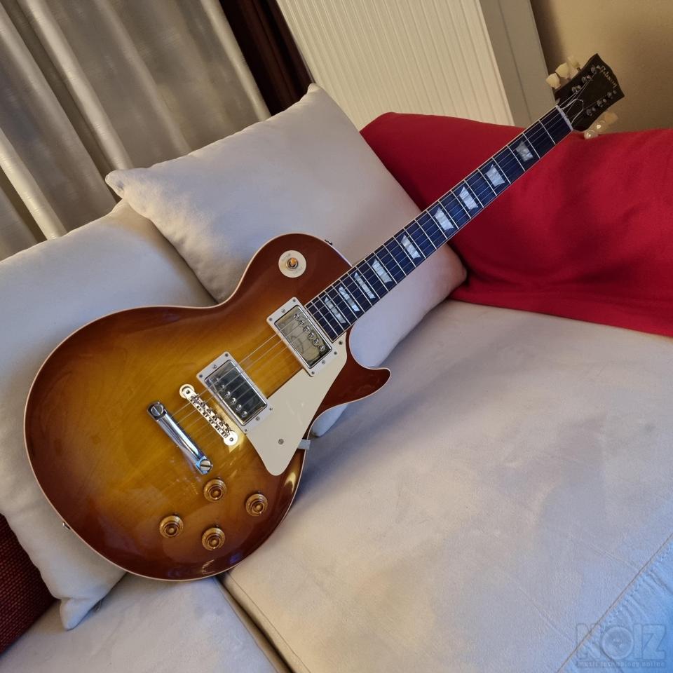 Πωλείται σε κατάσταση βιτρίνας η κιθάρα του τίτλου Gibson Custom Shop Les Paul V.O.S 1958 Reissue με ελάχιστη χρήση. Εξαιρετική και μόλις 3,95 κιλά. Το μανίκι θυμίζει προφίλ R9, σε καμία περίπτωση baseball bat. Το όργανο παίζει εξαιρετικά! Παρακαλώ όχι παζάρια και ανταλλαγές. Στέλνω παντού με δικά σας έξοδα. Τα specs ακολουθούν: