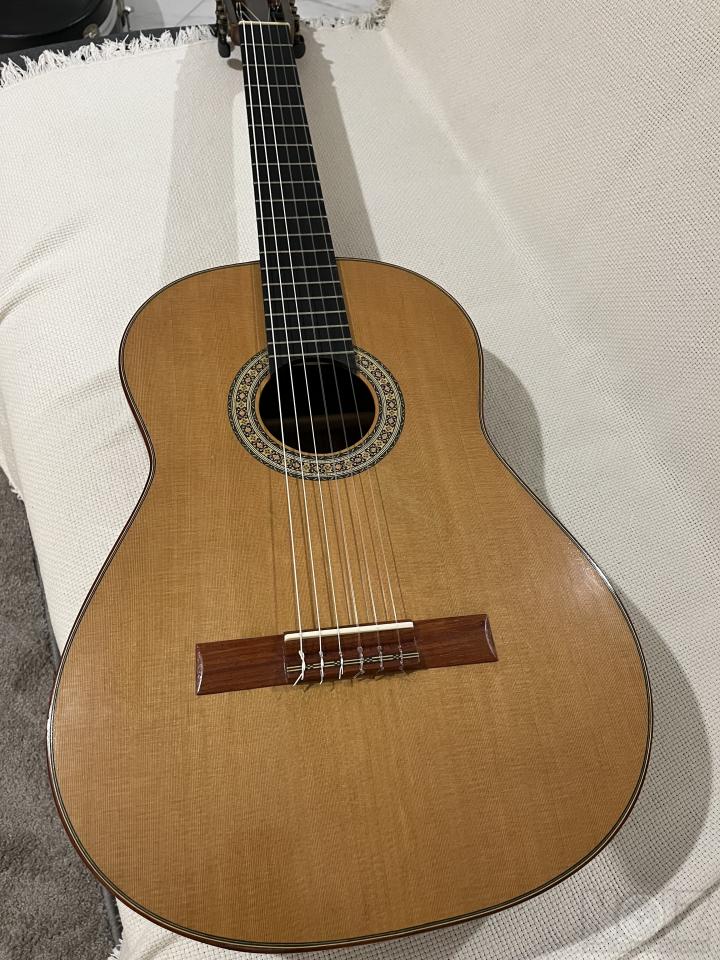 ΠΩΛΕΙΤΑΙ χειροποίητη κλασική κιθάρα από τον Τάσο Κουκουριγκο. Η κιθάρα είναι σε άριστη κατάσταση και έχει χρησιμοποιηθεί ελάχιστα. Κατασκευασμένη το 2014 και παιγμένη μόνο για 2 χρόνια. Έκτοτε έβγαινε από τη θήκη της μόνο για σεταρισμα. Διαθέτει χορδες hanabach που αλλάχτηκαν προσφατα. Τα ξύλα της είναι από καρύδια,κέδρο και τριανταφυλλιά. Δίνεται μαζί με τη βαλίτσα της στα 550 €. Δεκτές οι δοκιμές στον χώρο μου.