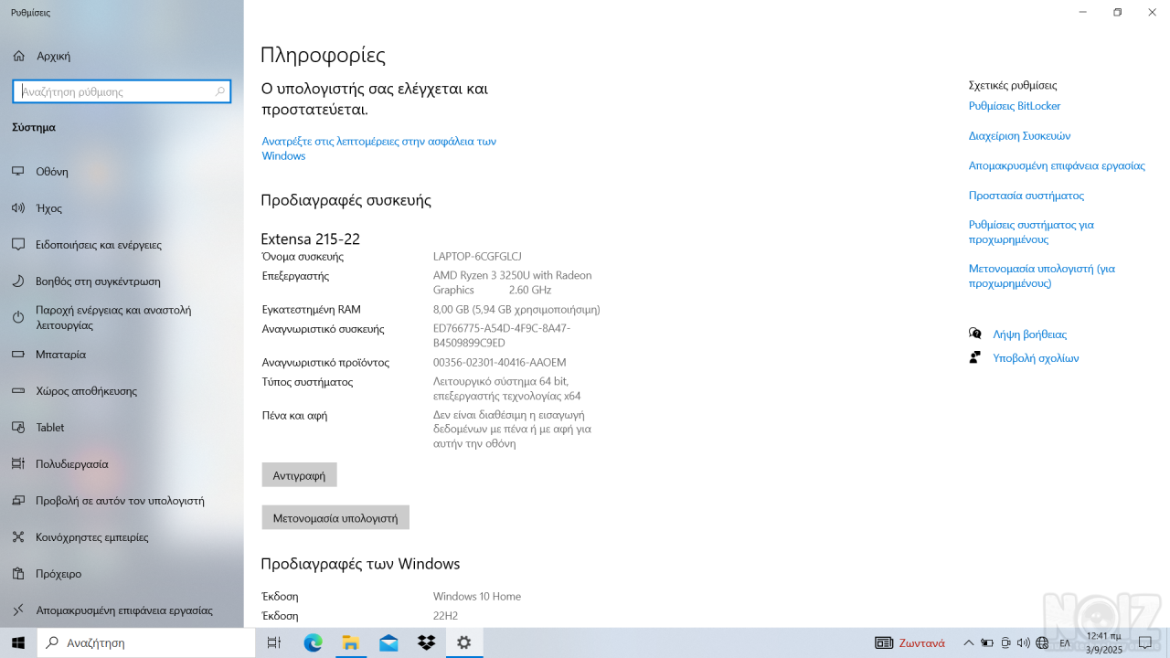 Πωλείται laptop acer extensa 215-22