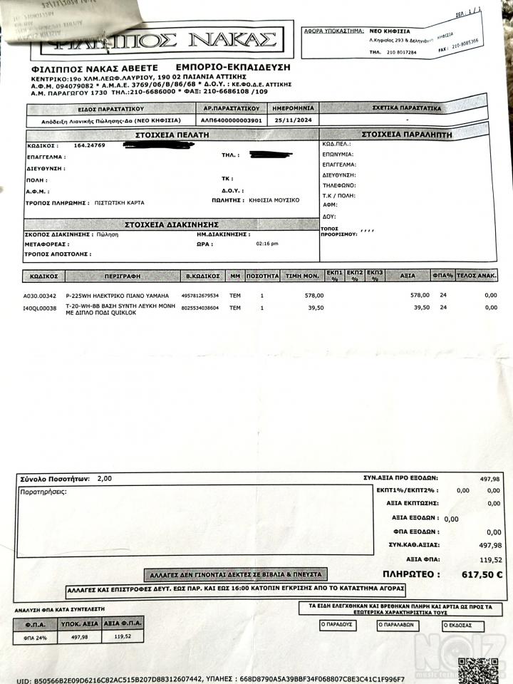 Περιλαμβάνεται απόδειξη αγοράς + 1 χρόνος εγγύηση.