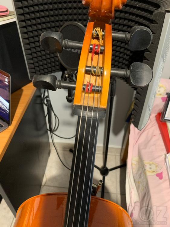 Δίνεται σετ μαζί με όλα τα παρελκόμενα: θήκη, δοξάρι, ρετσίνι, pin stopper, σουρντίνα ορχήστρας και βάση τσέλου και δοξαριού, όλα μαζί στην τιμή των 400 ευρώ.