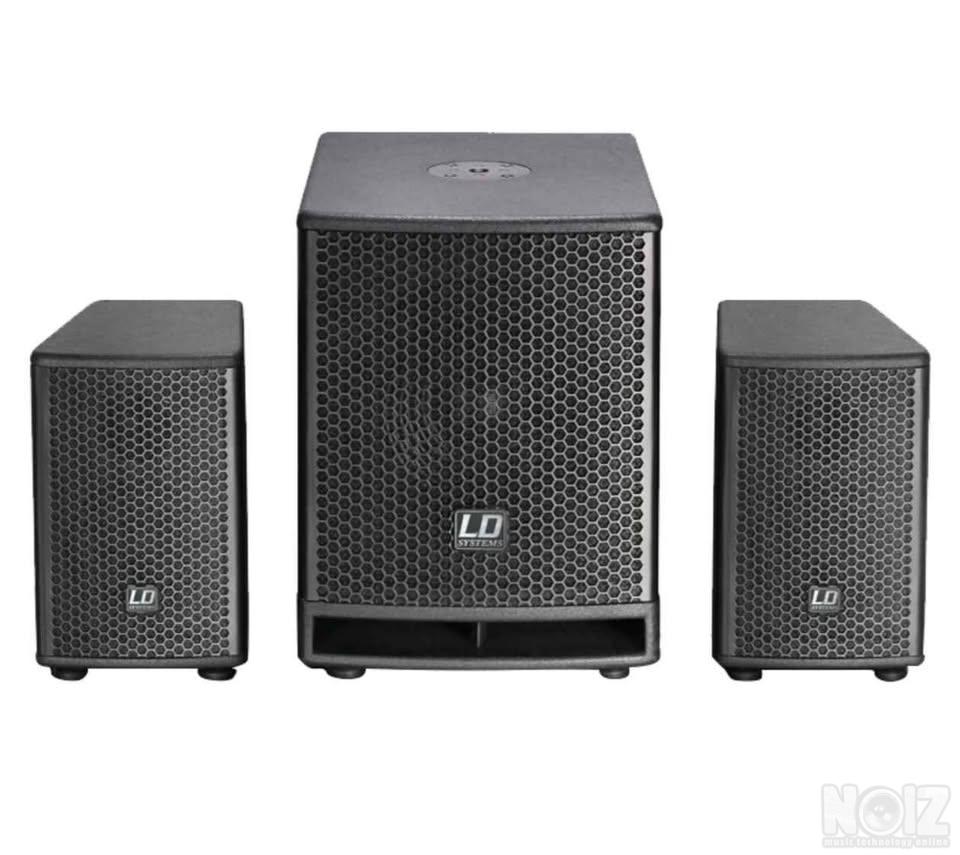 The LD Systems DAVE 10 G3 is the latest generation of an extremely compact active PA system. The bass reflex subwoofer provides a solid bass foundation; the satellites ensure clearly defined mids and clear treble. The 2.1 power amp module built into the subwoofer delivers 1400W Peak power, and the intelligent LD LECC DSP guarantees perfect interaction and controlled functioning. The digital signal processor includes specially optimised crossovers, separate equalisers and limiters for the bass, mid, and treble frequency ranges, and a dynamic compressor that controls the subwoofer according to volume and provides for increased punch at low volumes.