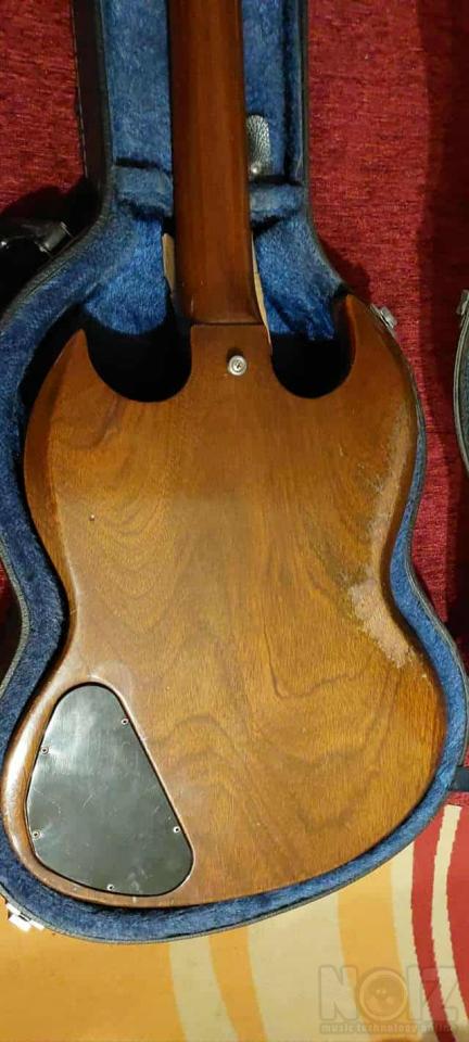 Gibson SG 1973 χωρίς κανένα σπάσιμο με μαονι Ονδούρας ένα κομμάτι, τα κλειδιά δεν είναι τα γνήσια και ο μαγνήτης της γέφυρας είναι από custom les Paul 1978 αλλα όλα αυτά αλλάζουν και γίνεται original για κάποιον που την θέλει για συλλεκτικους λόγους!! Για όποιον θέλει τον γνήσιο Gibson ήχο έτσι όπως είναι η κιθάρα είναι τέλεια!! Ευχαριστώ