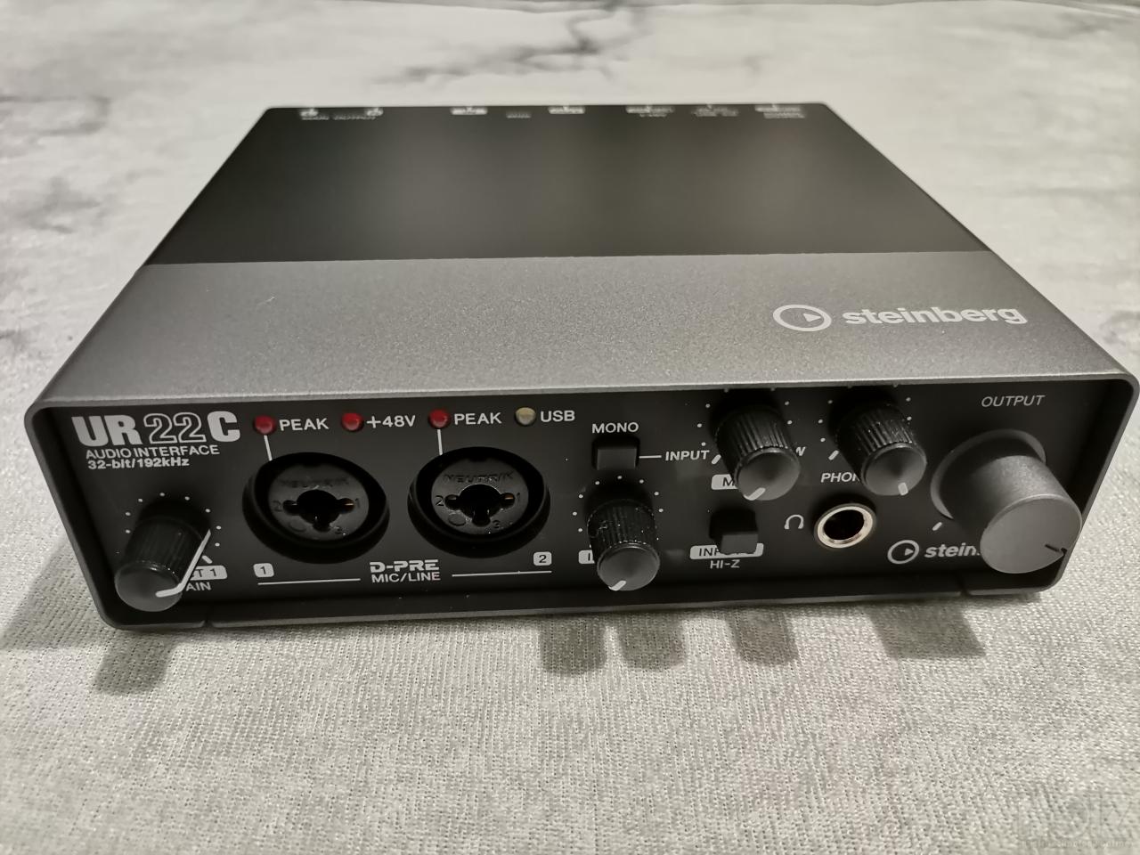 Κάρτα Ήχου Steinberg UR22C. Καινούργια με το κουτί της, με όλα τα ducuments και τα softwares. H κάρτα είναι 32-Bit / 192 kHz και έχει HI-Z Input για 2η ηλεκτρική κιθάρα. Έχει είσοδο και έξοδο MIDI, 2 είσοδοι μικροφώνου/line : Combo υποδοχή XLR / 6.3 mm , 2 έξοδοι : βύσμα 6,3 mm, και είναι μεταλλική κατασκευή. Περιλαμβάνει την εφαρμογή Cubase AI και Cubasis LE DAW για iPad (download versions). Είναι η τελευταία βελτιωμένη έκδοση UR22-C.