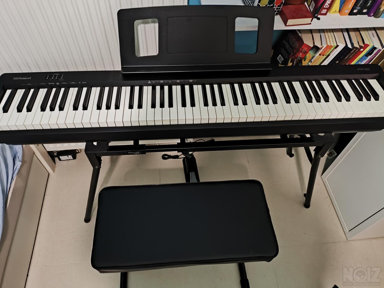 Ηλεκτρικό πιάνο ROLAND FP-10-BK, με βάση MXS-A1 STAGG, πετάλι SUSPED 10 SUSTAIN, σκαμπό ρυθμιζόμενο QUICKLOK BX-8 και κάλυμμα προστασίας. Αγορασμένα 9/2023 για εξάσκηση σε άριστη κατάσταση.