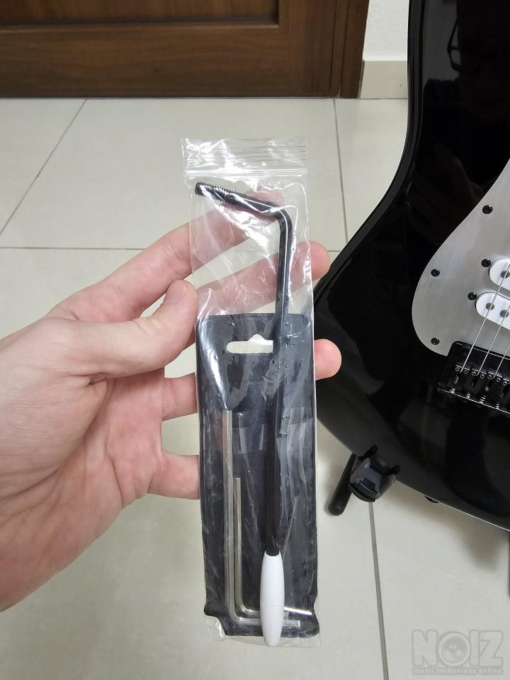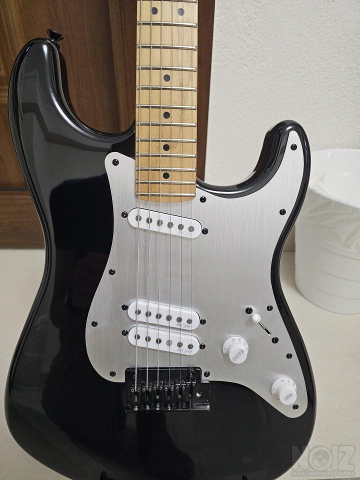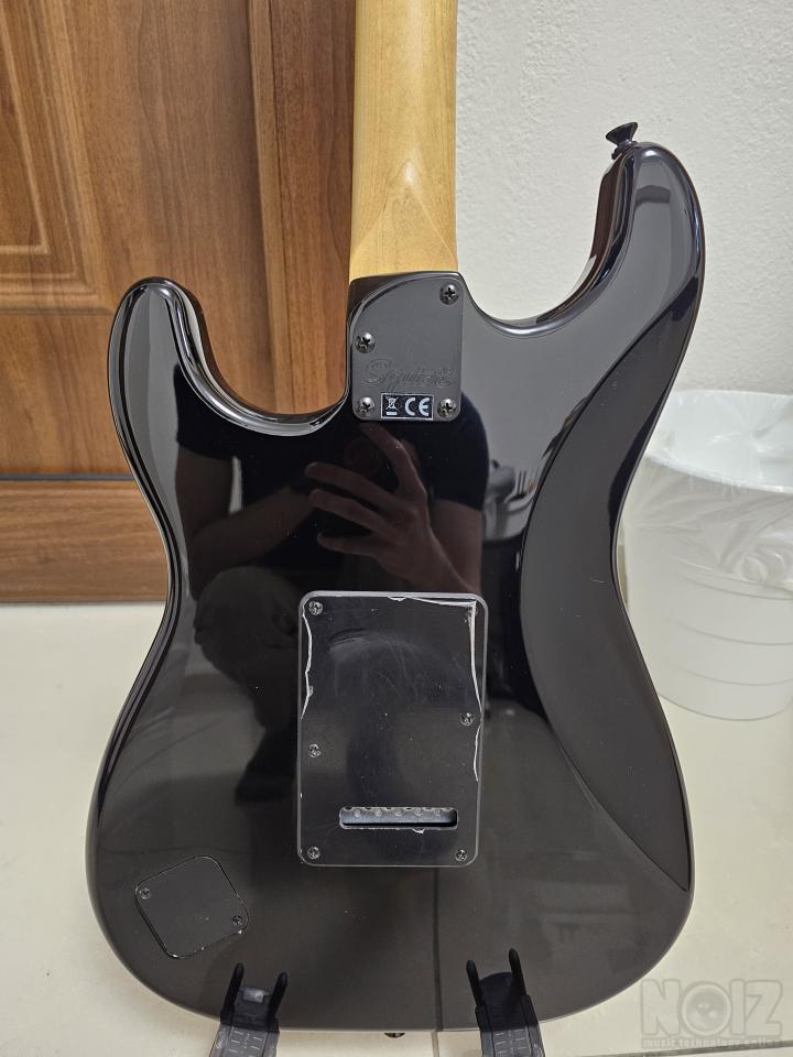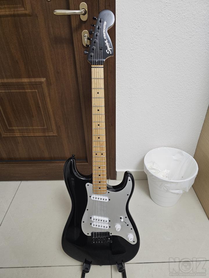 This is a Fender Squier Contemporary Stratocaster Special Black. It has a 5 way pickup selector with three single coil pickups in a unique placement. It has one volume and one tone knob, a 22 fret length neck, classic-style tuning machines, a whammy bar, 2-point tremolo, and black hardware. I purchased it a little over one year ago, and the reason I am selling it is because it no longer fits my style and I am looking for something new. The only real problem it has is a loose output jack, which causes a loss of output briefly if you bump your cable while playing. It has minor scratches and still has some of the original plastic protection on the back. It comes with the original hexagonal (Alan) wrenches.
