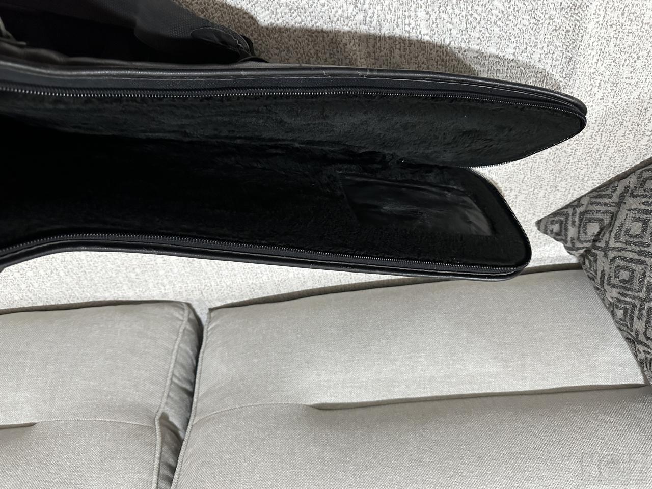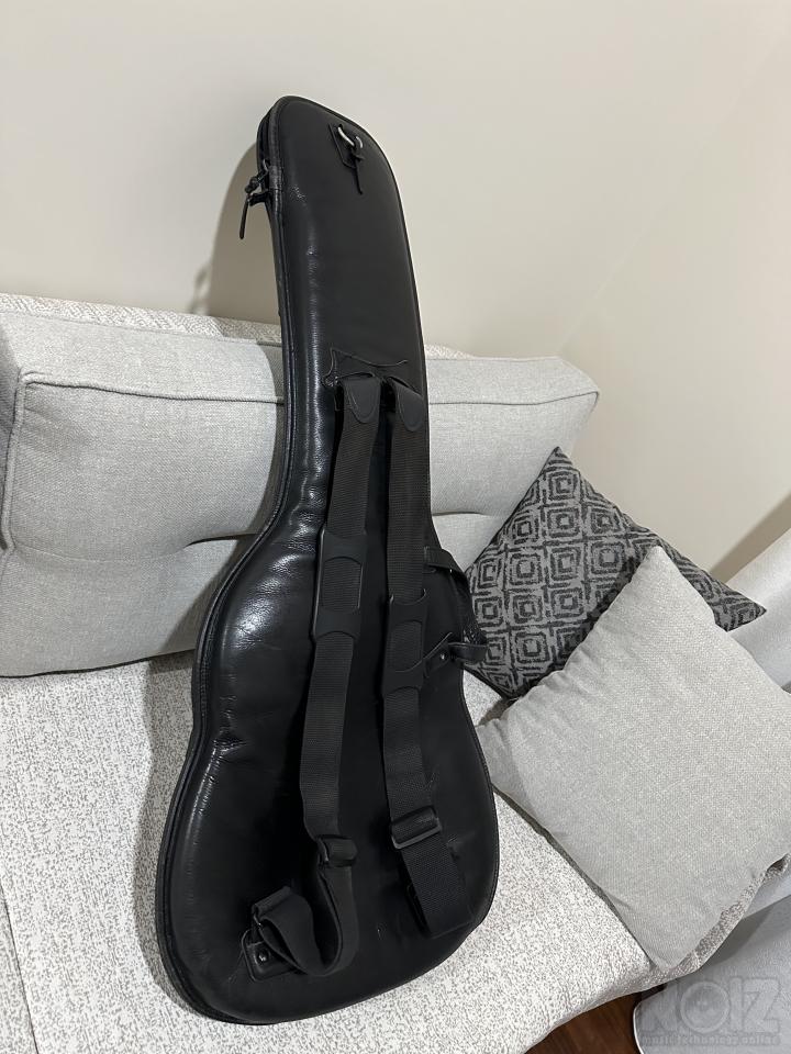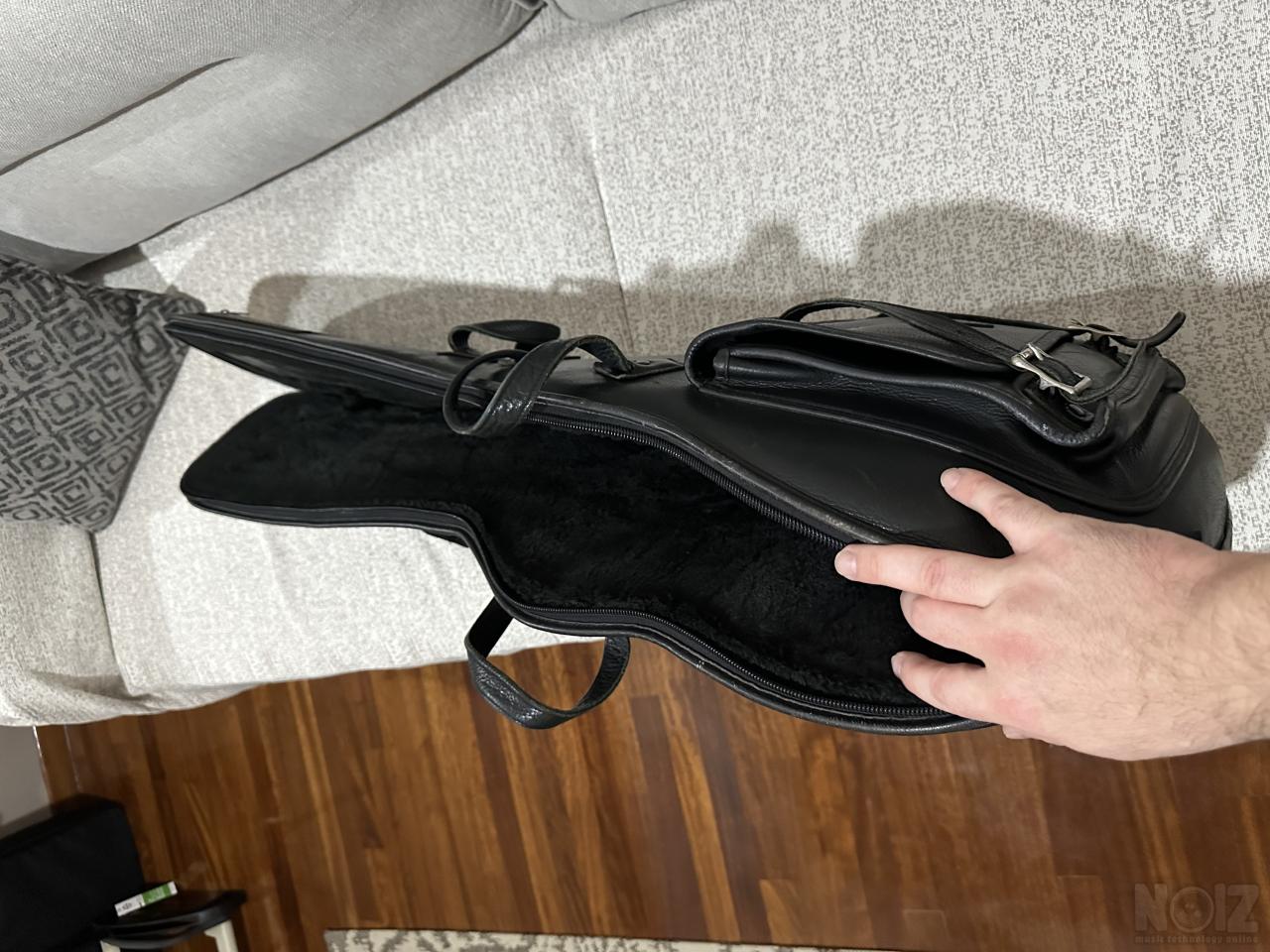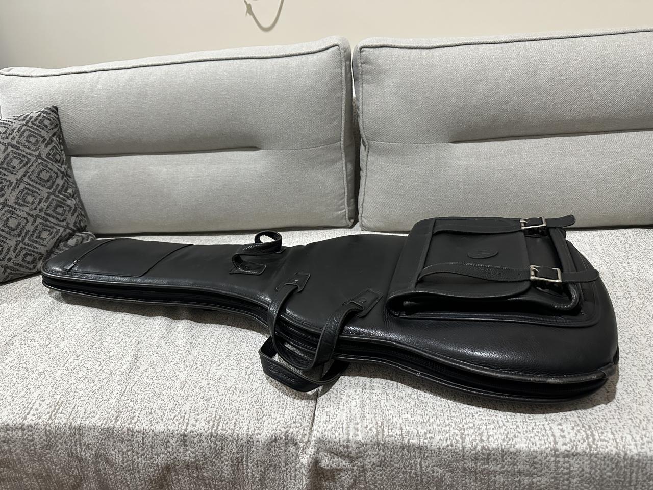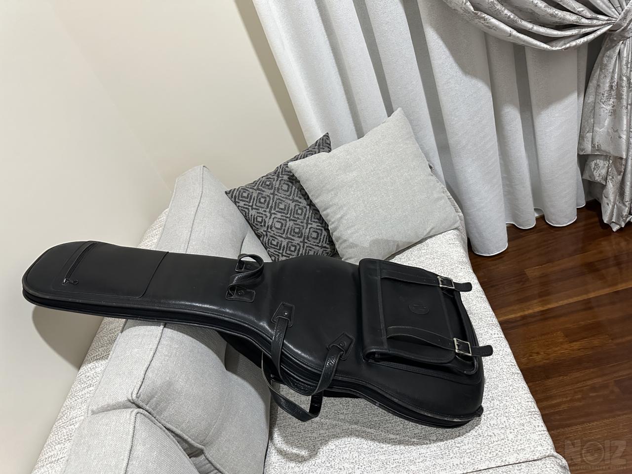 Πωλείται μία απο τις ακριβότερες, ποιοτικότερες soft θήκες κιθάρας στον πλανήτη. Πραγματικό leather παντού, reinforced leather straps και handles, 2 extra pouches, βιομηχανικό φερμουαρ, εσωτερικό padding 3 περιπου εκατοστών και μπροστα και πίσω σε όλη την θήκη, και εσωτερικό reinforcment στο headstock για να μην σκιζεται η φοδρα απο τις χορδες.