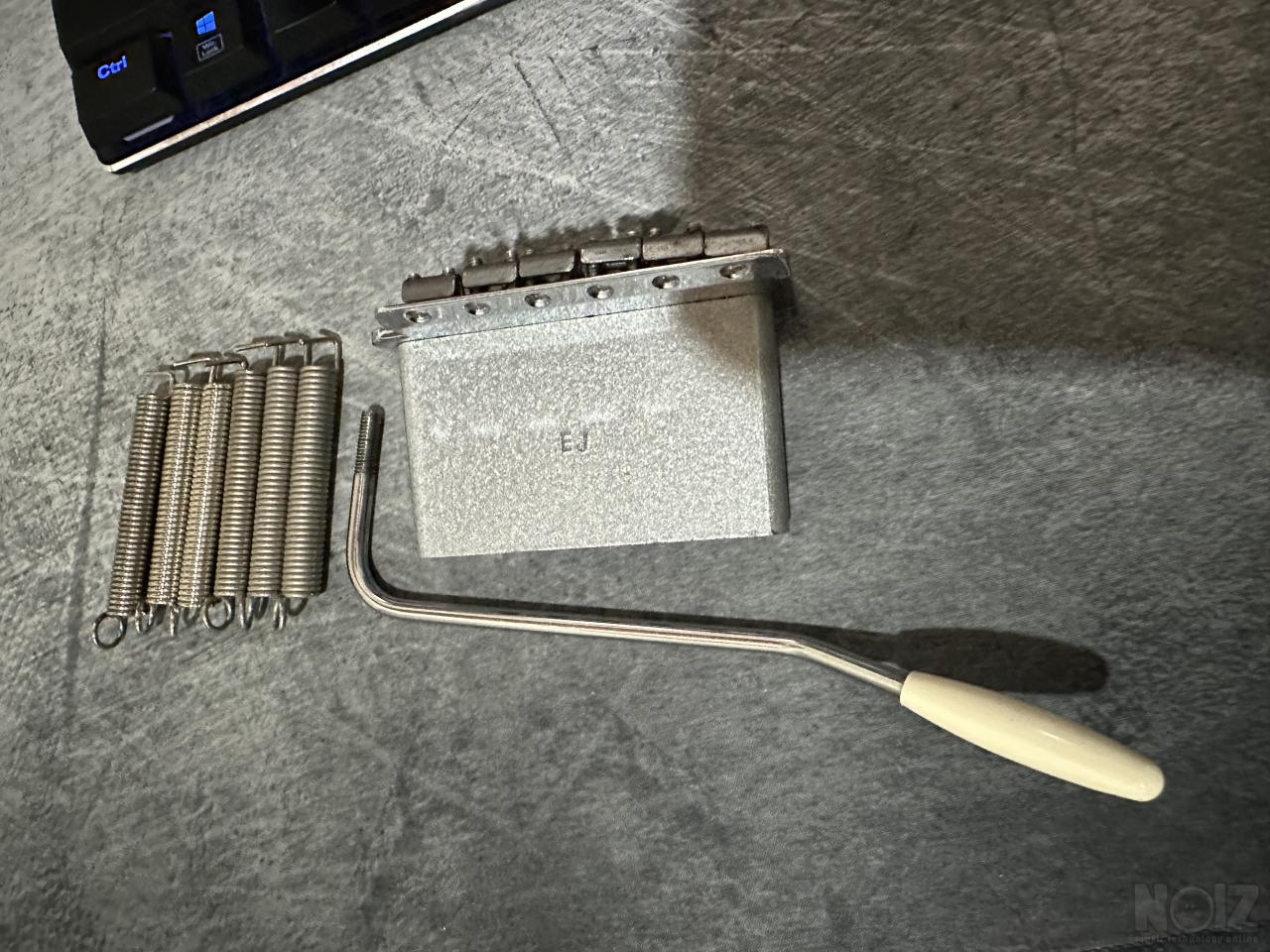Πωλείται όπως λέει και ο τίτλος το signature tremolo bridge unit απο EJ start σε κατασταση mint/like new. Ανήκει στην vintage 6 bolt screw synchronized tremolos, με τιμες thomann στο generic vintage category στα 207€ όπως μιλάμε τώρα. Τιμή με το τρεμολο bar του και τα ελλατηριά του στα 130€. Οι βίδες έχουν μείνει με το όργανο απο το οποίο βγήκε, οπότε είτε χρησιμποιείτε τις δικές σας βιδες για upgrade σε υπαρχον οργανο (τις περισσοτερες φορες οι βίδες κάνουν αναμεσα σε μάρκες και μοντέλα vintage type tremolos) ή περνετε καινουργιο σετ 6 βιδων με 8€ περιπου η και λιγοτερο.