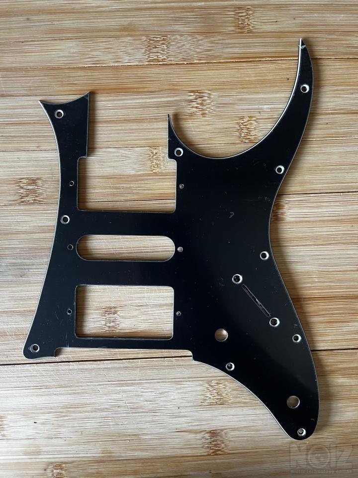 Ibanez Pickguard (Made in Korea) μαύρου χρώματος, 3 στρώσεων (3-ply), με τρύπες για χρωμιωμένες βίδες (οι βίδες δεν περιλαμβάνονται).