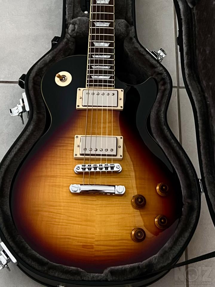 Το συγκεκριμένο μοντέλο είναι το πιο δυσεύρετο premium μοντέλο της epiphone με Gibson μαγνήτες, και ως χρήστης και κάτοχος gibson, μπορώ να πω πως είναι ανώτερη από τις studio, και κοντράρει στα ίσια τα πιο ακριβά μοντέλα. Κλασική les paul, αλλα με πιο λεπτο λαιμο 60s slim taper.