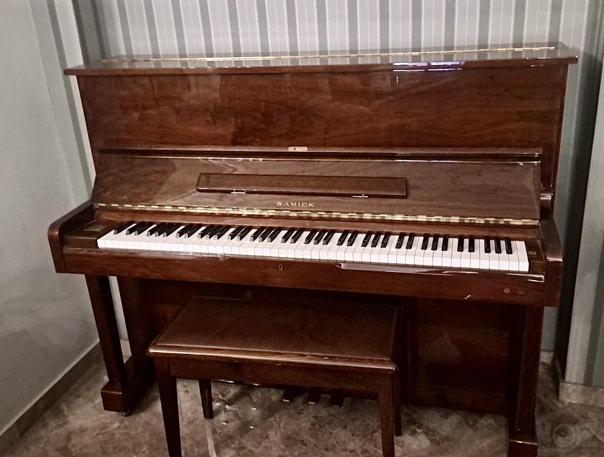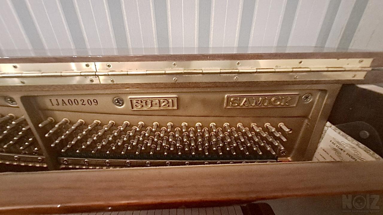 Samick upright πιάνο με κάθισμα, μοντέλο SU-121 χρώματος καρυδιάς, σε άριστη κατάσταση. Δεκτός ο έλεγχος.