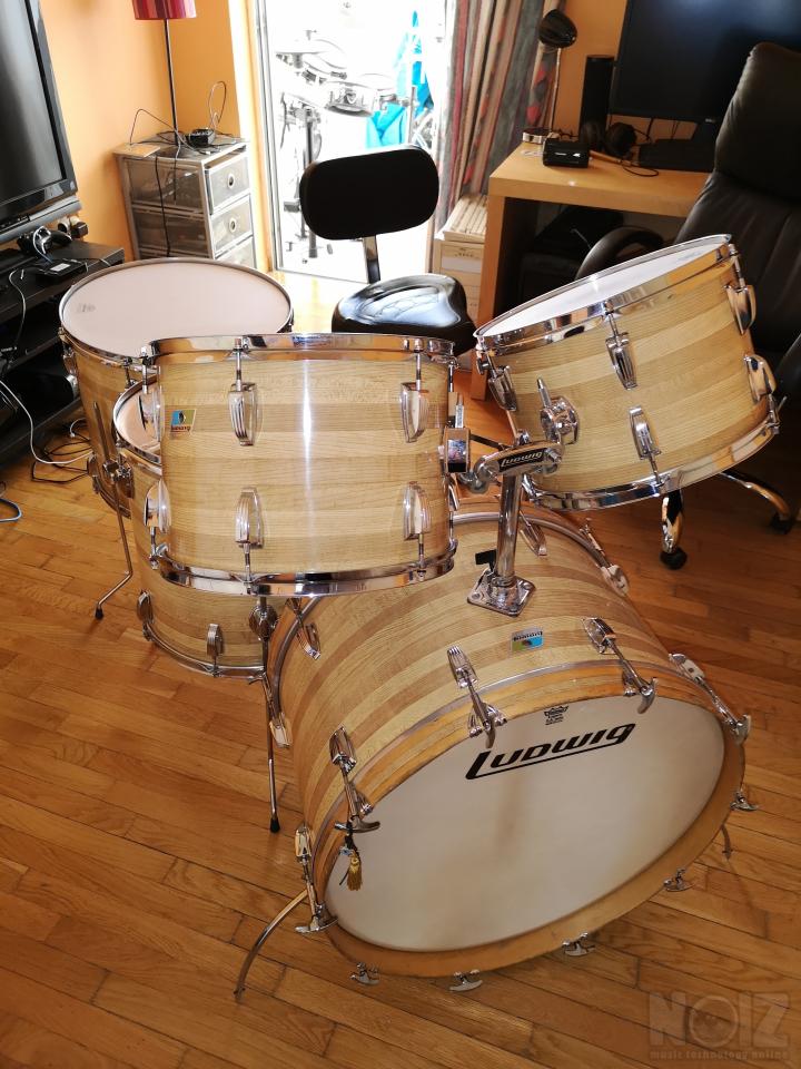 LUDWIG φινιρισμα BUTCHER BLOCK,τριφυλλο maple του 1975.Σε αριστη κατασταση αποτελειται απο 2 τομ 13"και 14",2 βαθεια 16" και 18" και κασα 24",δερματα καινουρια,τα παντα λειτουργικα!Δεχομαι και ανταλλαγες (κυριως SONOR PHONIC)αλλα και οποιο αλλο καλο σετ συν την διαφορα