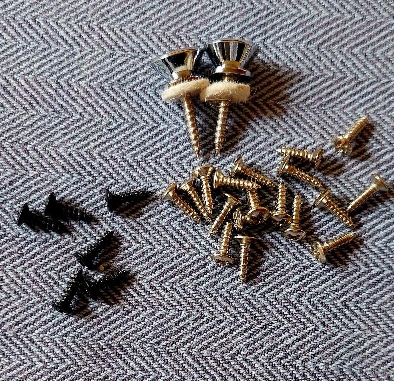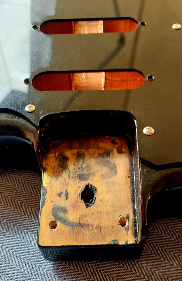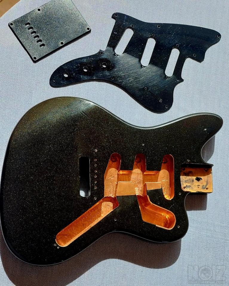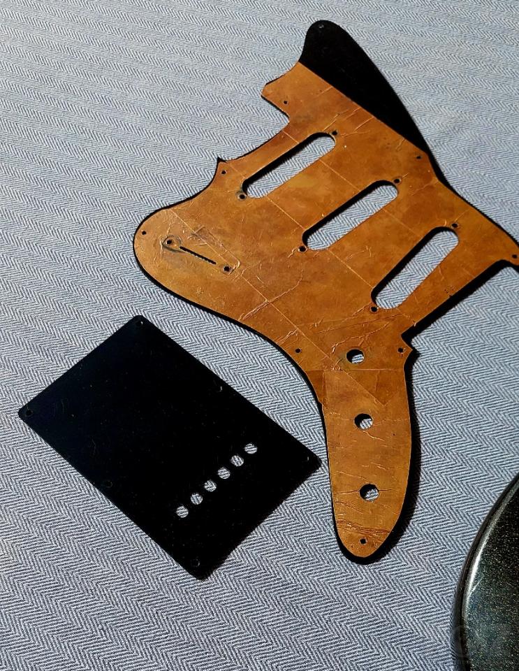 Μαζί δίνεται μαύρο custom one ply pickguard χωρίς bevel και επίσης μαύρο tremolo backplate (με bevel) με τις βίδες τους και μαύρο jackplate.Το pickguard είναι επίσης μονωμένο με copper foil και έχει slot για 5θέσιο διακόπτη και θέσεις για 3 ποτενσιόμετρα. Επίσης περιλαμβάνονται και τα strap pins.