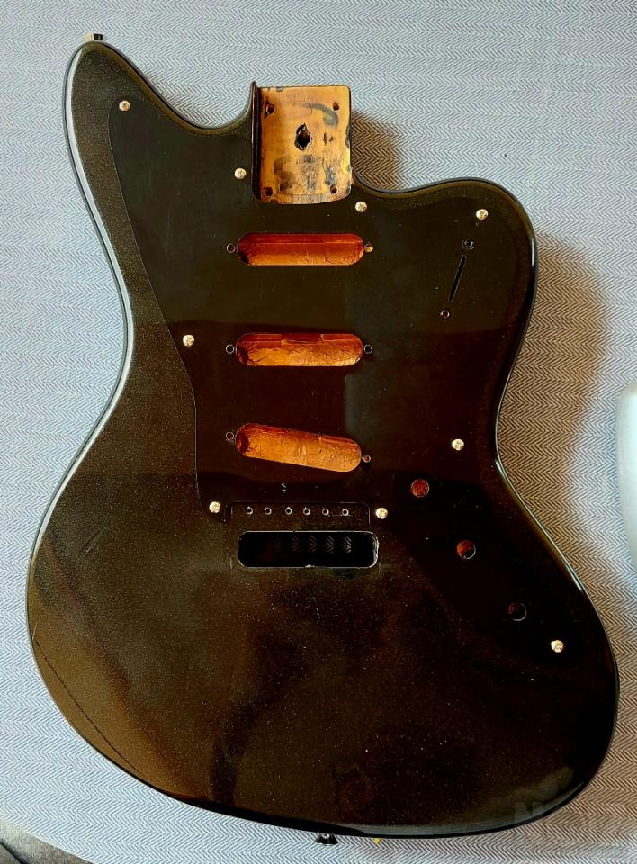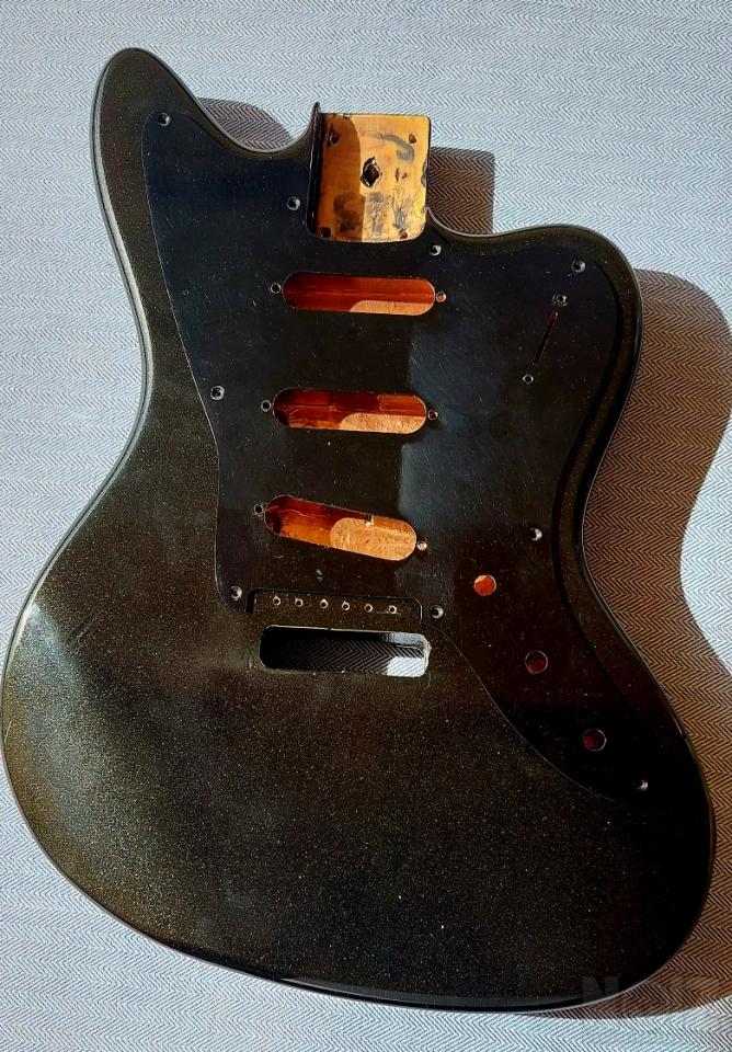 Επίσης έχω τροποποιήσει το neck pocket για να δέχεται σωστά και χωρίς κενά, μπράτσο με squier, Mexico, USA specs (neck heel στα 56mm). Είναι συμβατό με μπράτσο stratocaster ή jazzmaster με scale length στα 648mm όχι jaguar ή mustang ή jagstang.